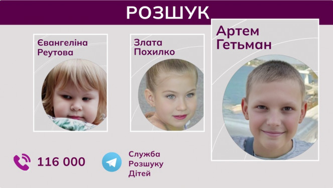 Семирічна Євангеліна Реутова, десятирічна Злата Похилко та одинадцятирічний Артем Гетьман. Ці діти зникли на тимчасово окупованих т...
