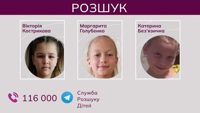Тринадцятирічна Вікторія Кострикова, п’ятнадцятирічна Маргарита Голубенко та шістнадцятирічна Катерина Без’язична. Усі ці дівчатка зник...