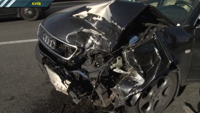 Серйозна аварія в столиці. На перитині вулиць Грінченка та Саперно-Слобідської у Києві. Зіткнулися два легковики Мазда та Ауді. ...