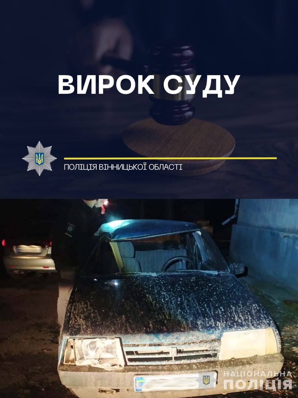 На Вінниччині засуджено водія-винуватця ДТП, в якій загинув 24-річний чоловік, - поліція