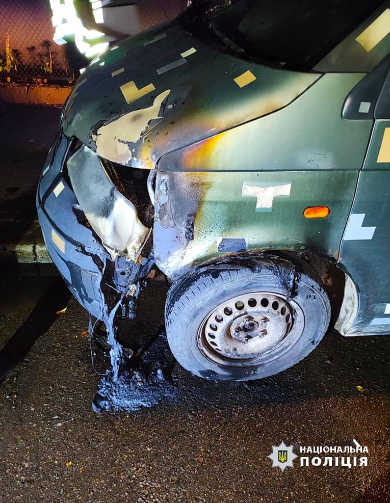 Вночі до поліції надійшло повідомлення про те, що горить транспортний засіб «Volkswagen Transporter». На місце події виїхали поліцейські, які в подальшому встановили що пошкоджене авто використовувалось для волонтерської діяльності.