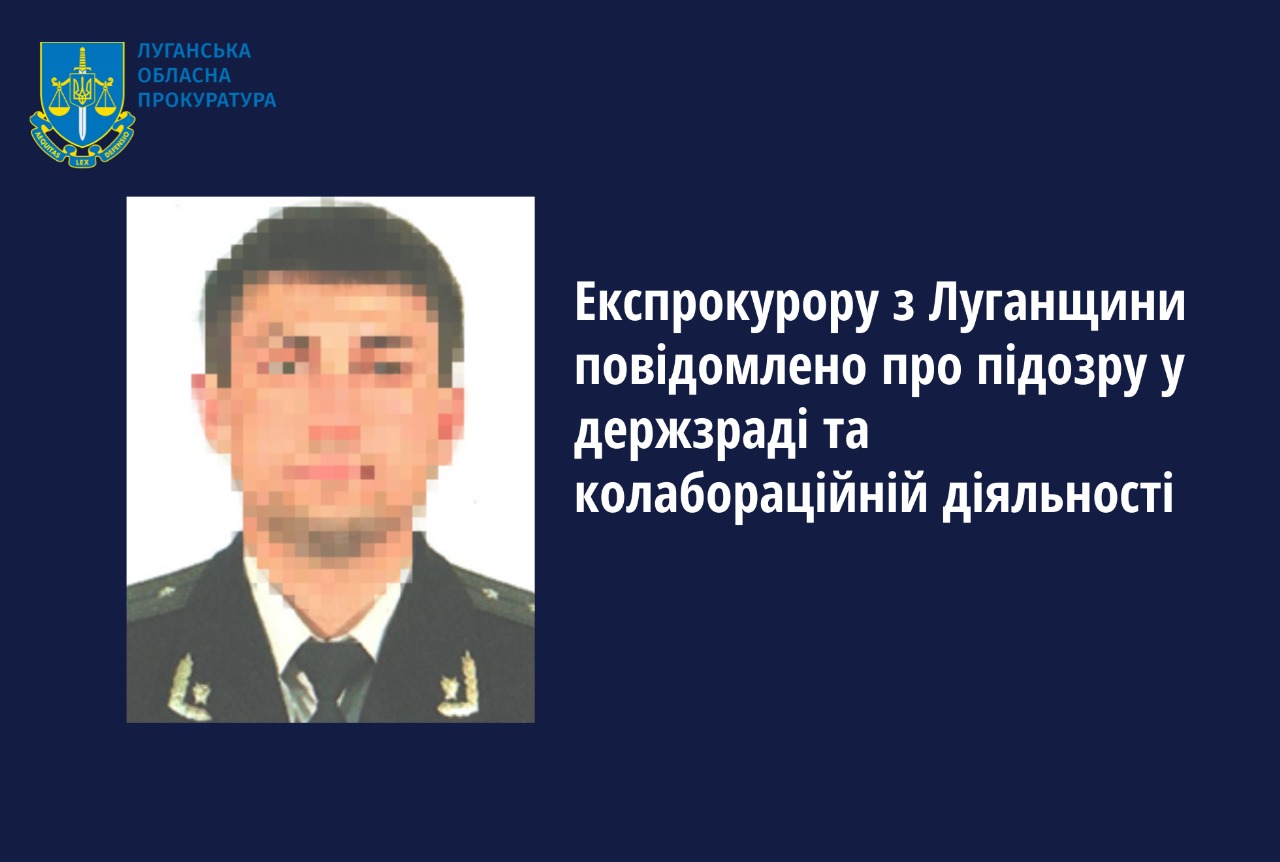 За спільного процесуального керівництва Луганської обласної прокуратури та прокурорів Генеральної інспекції Офісу Генерального прокурора повідомлено про підозру прокурору однієї з окружних прокуратур Луганської області у державній зраді та колабораційній діяльності.