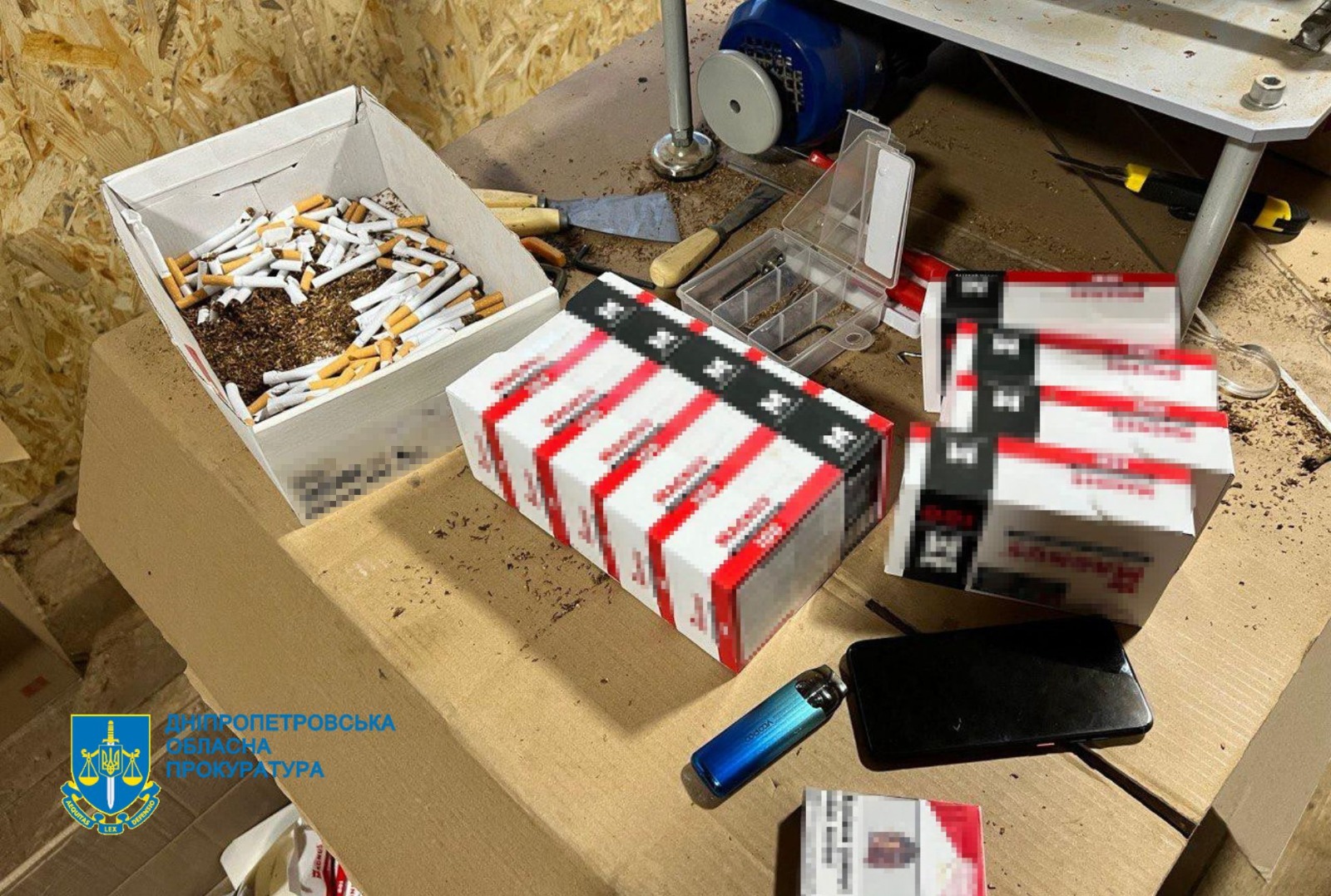За процесуального керівництва Дніпропетровської обласної прокуратури припинено діяльність двох підпільних цехів з виготовлення і реалізації контрафактних тютюнових виробів. Їх організували 6 учасників групи у Кам’янському. Наразі їм повідомлено про підозру.