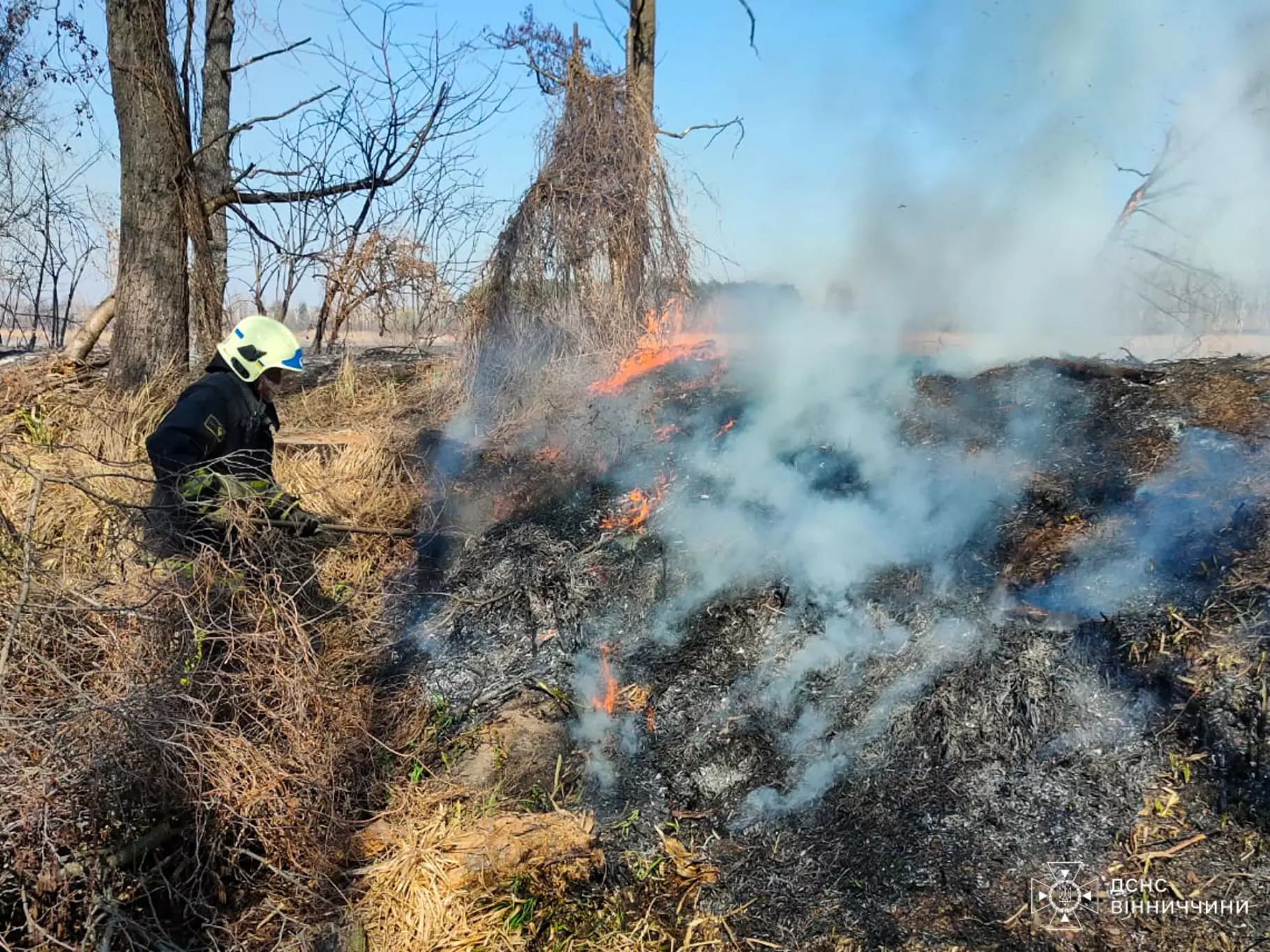 У селі на Вінниччині палала трава та очерет - на місці пожежі знайдено тіло жінки. ФОТО