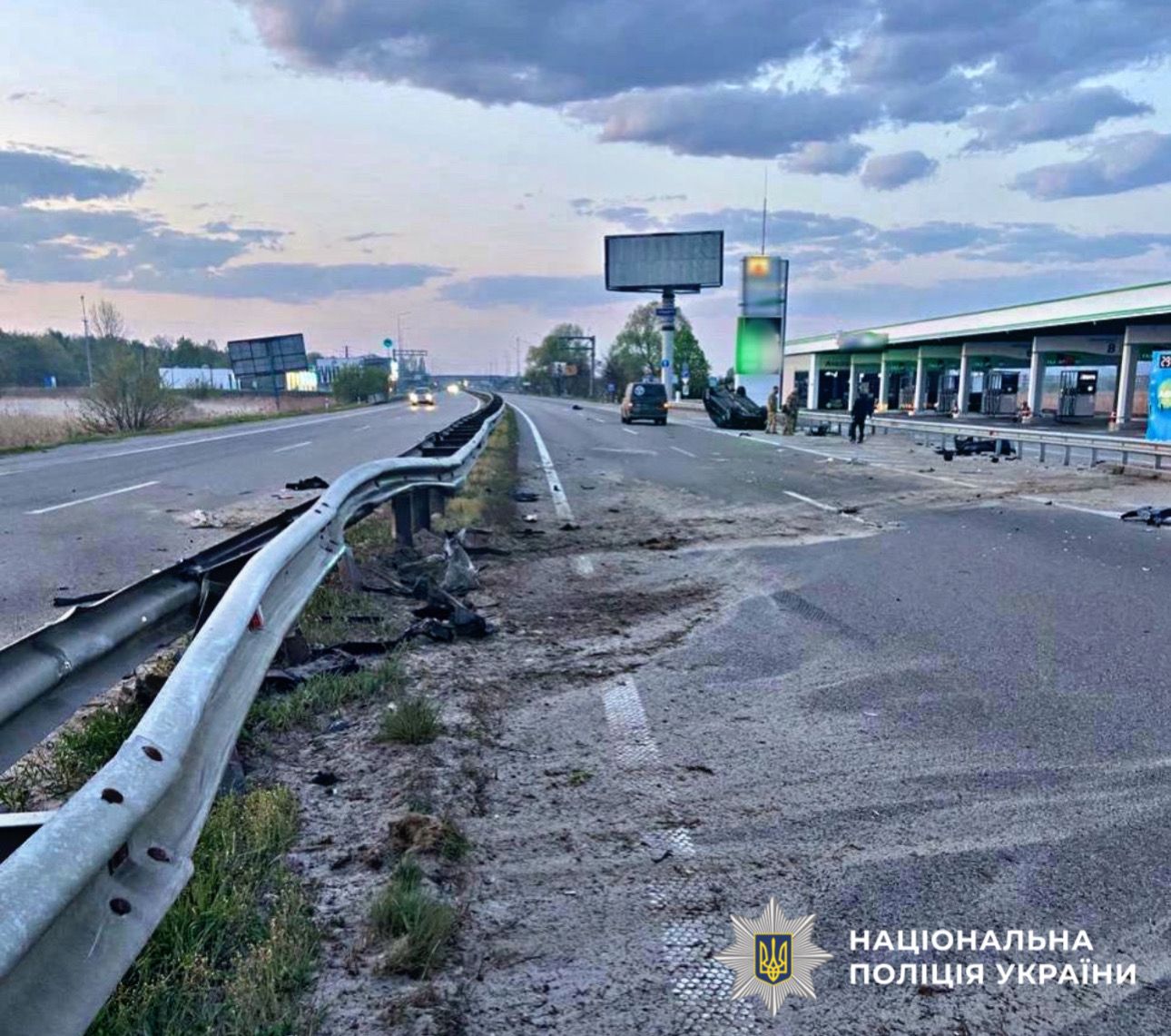 За попередніми даними, водій автомобіля Toyota не впорався з керуванням та вʼїхав у відбійник. Від удару транспортний засіб перекинувся на дах.