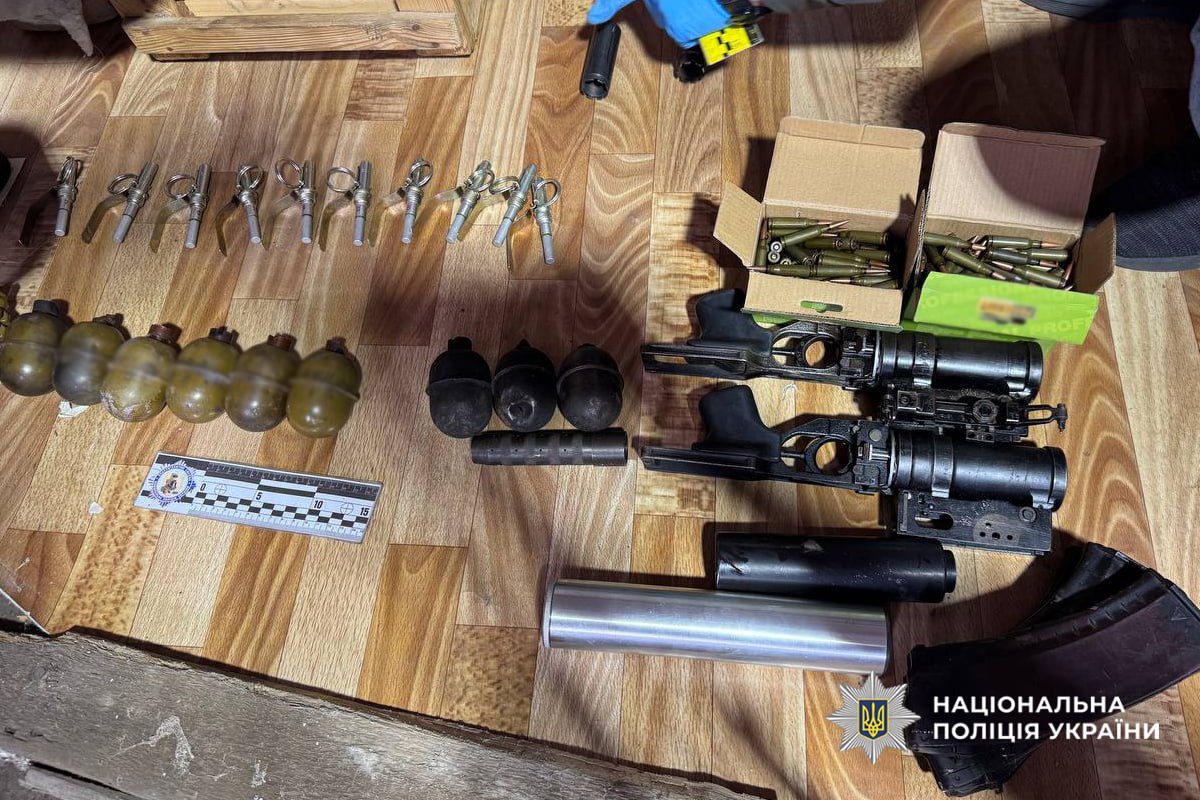 У його домоволодінні провели обшуки, де виявили значний арсенал зброї та боєприпасів: автоматичну зброю «АКС-74», понад 30 гранат різних типів, два підствольні гранатомети, ручний гранатомет «RPG-75», вибухові речовини, обріз мисливської рушниці, понад тисячу набоїв різних калібрів, глушники та інші речові докази, які після проведення експертизи.