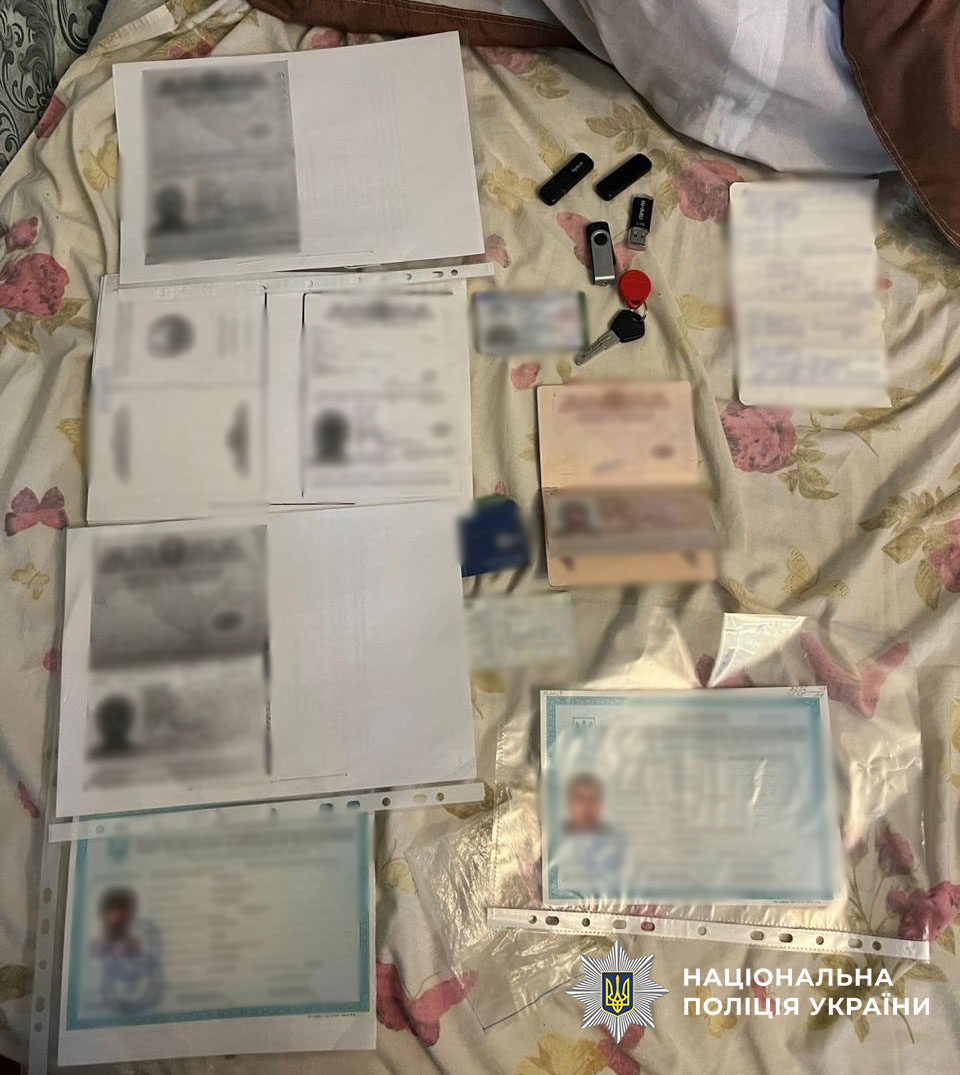 Під час обшуків, правоохоронці вилучили у фігуранта мобільні телефони, ноутбуки, носії інформації, готівку, банківські картки, документи, що стосуються легалізації іноземців, копії посвідок на проживання, паспорти громадян інших країн, чорнові записи та печатки підприємств.