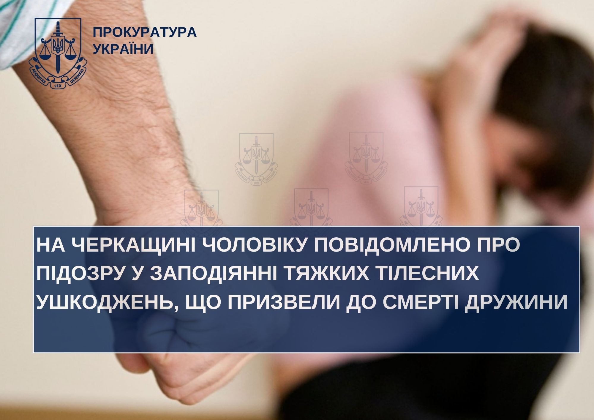 За процесуального керівництва прокурорів Золотоніської окружної прокуратури 55-річному жителю Золотоніського району повідомлено про підозру в умисному тяжкому тілесному ушкодженні, що спричинило смерть його дружини.