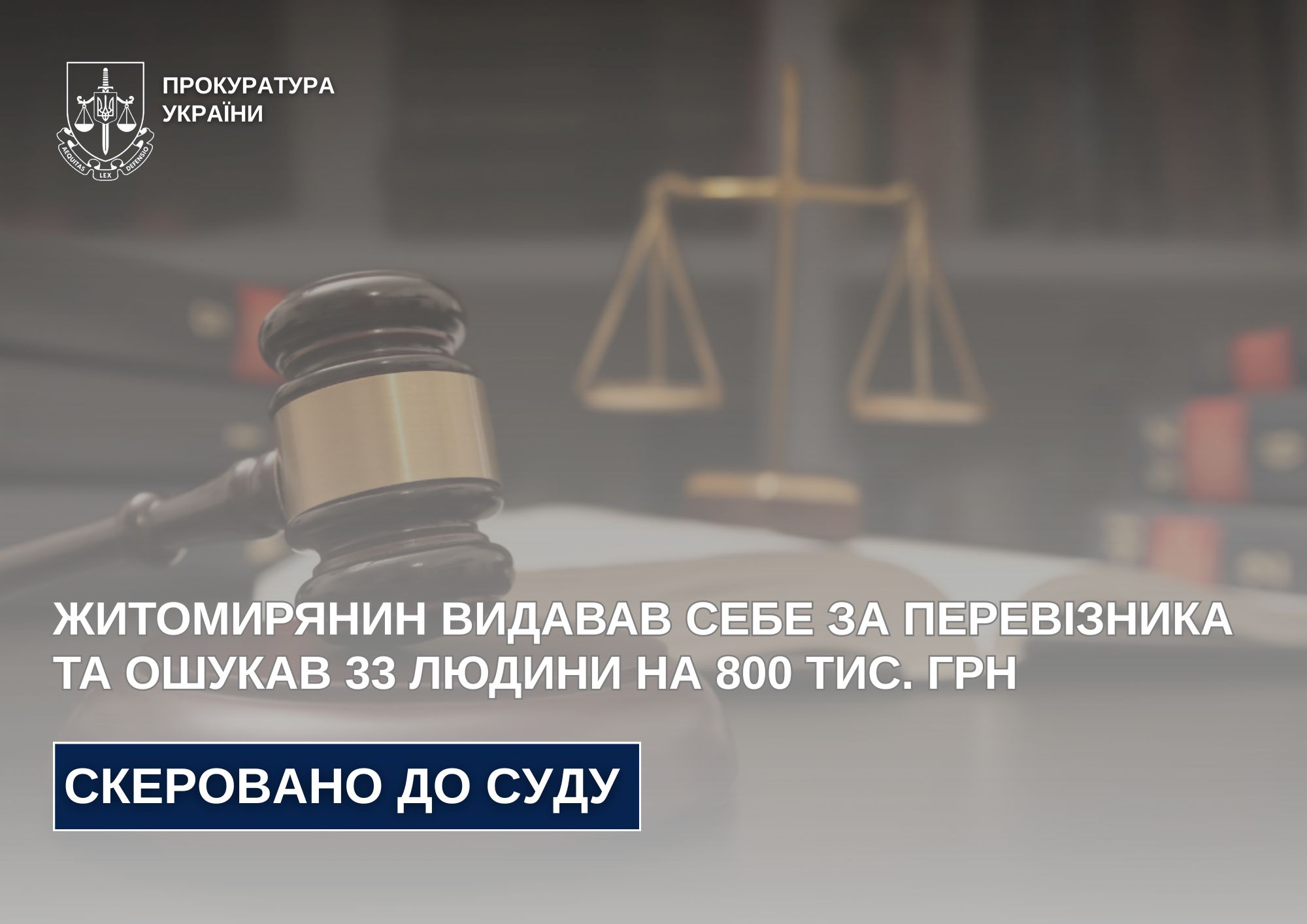 Під виглядом перевізника ошукав 33 людини майже на мільйон гривень - судитимуть житомирянина