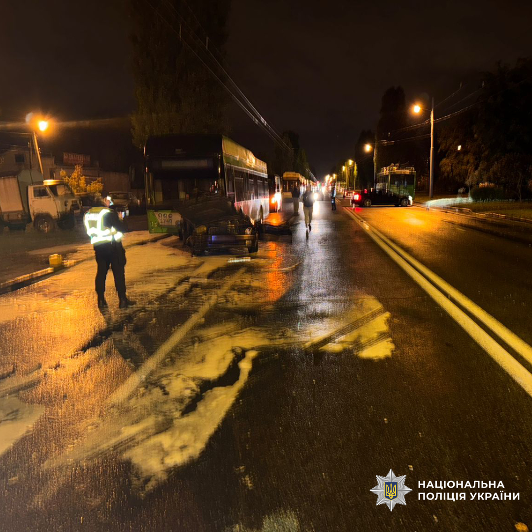 У Харкові легковик врізався у припаркований тролейбус: троє людей у лікарні. ФОТО