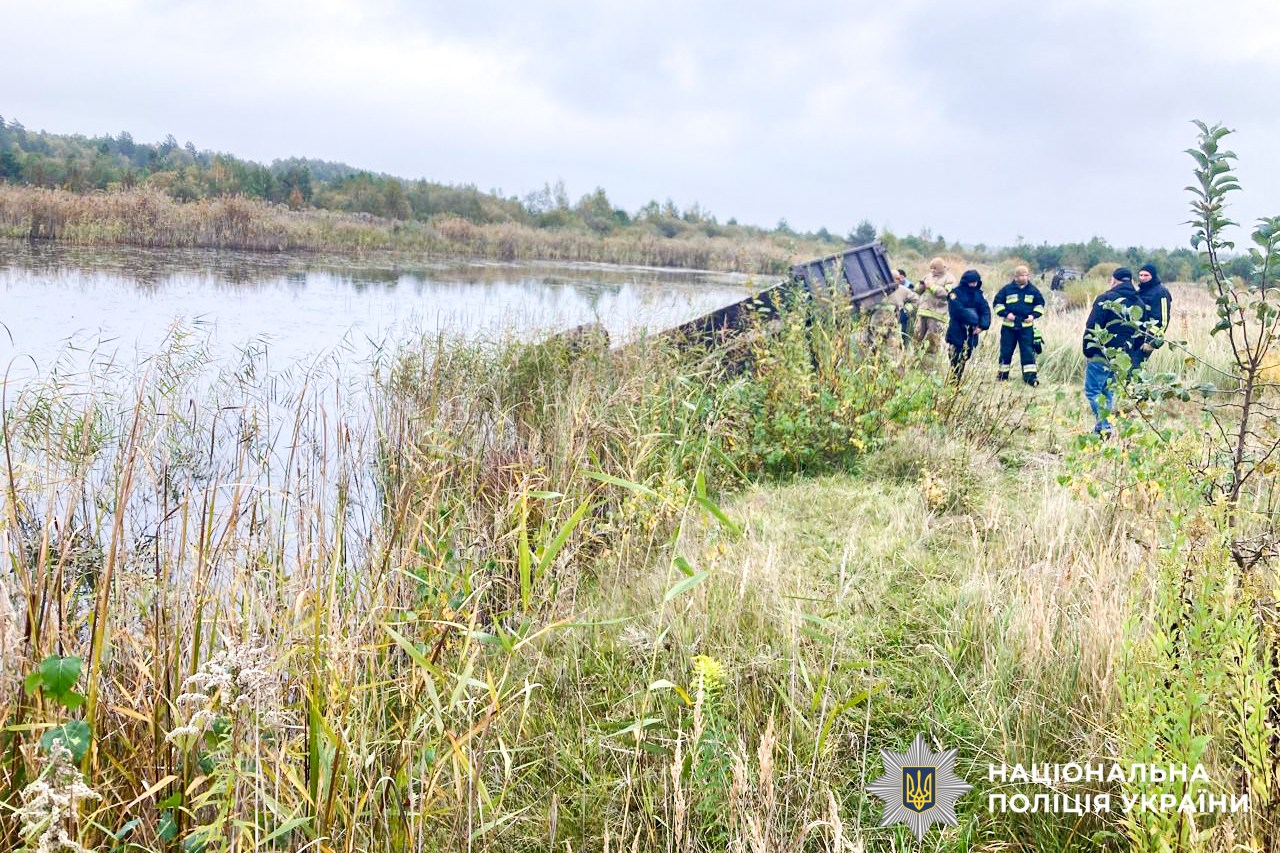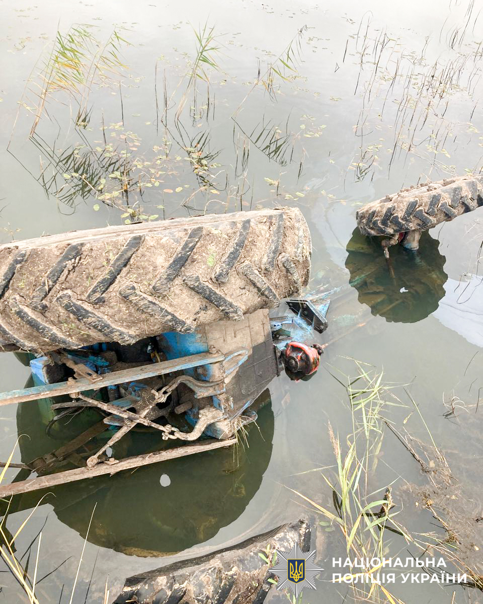 Поліцейські на місці події встановили, що 44-річний житель села Малий Мидськ, керуючи трактором «Т-40» з причепом, рухаючись поруч водойми, не розрахував край берега та допустив перекидання сільгосптехніки у ставок.