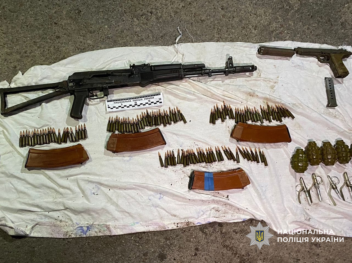 Оперативники отримали інформацію про те, що зловмисник торгує зброєю та боєприпасами. Поліцейські задокументували факт збуту заборонених предметів, а саме: 5 гранат «Ф-1», пістолет Макарова, автомат АКС-74 та 120 набоїв калібру 5,45 мм.