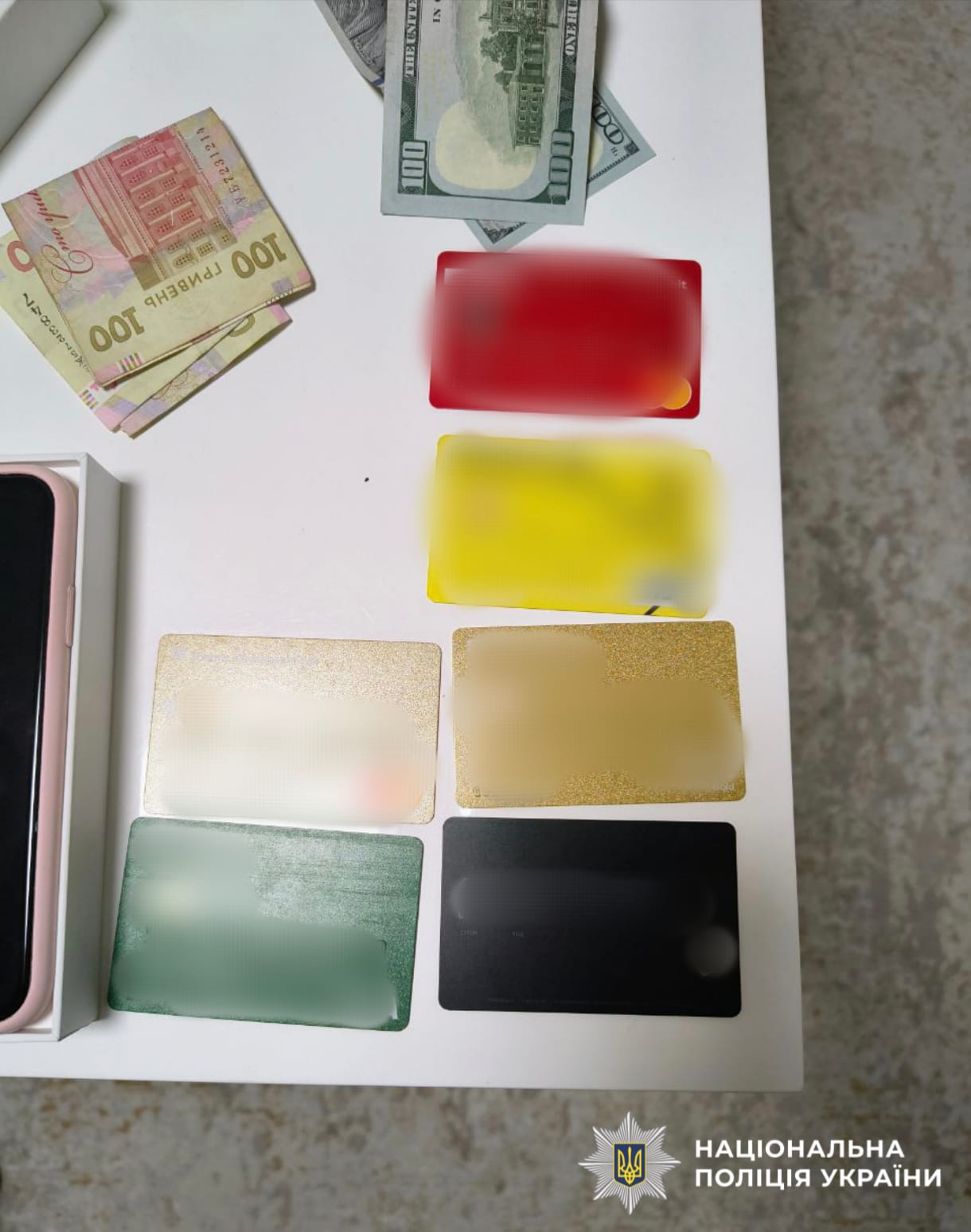Під час проведення низки обшуків за місцями мешкання фігурантів, у транспортних засобах та інших приміщеннях правоохоронці виявили та вилучили докази, серед яких: мобільні телефони, банківські картки, готівка в гривнях та доларах, в також канабіс та патрони різного калібру.