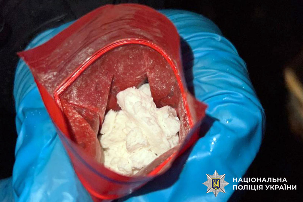 На місце події викликали слідчо-оперативну групу. Зловмисником виявився 27-річний житель Київської області. Пакунок з речовиною білого кольору поліцейські вилучили. Експертиза підтвердила, що це синтетичний наркотик амфетамін.