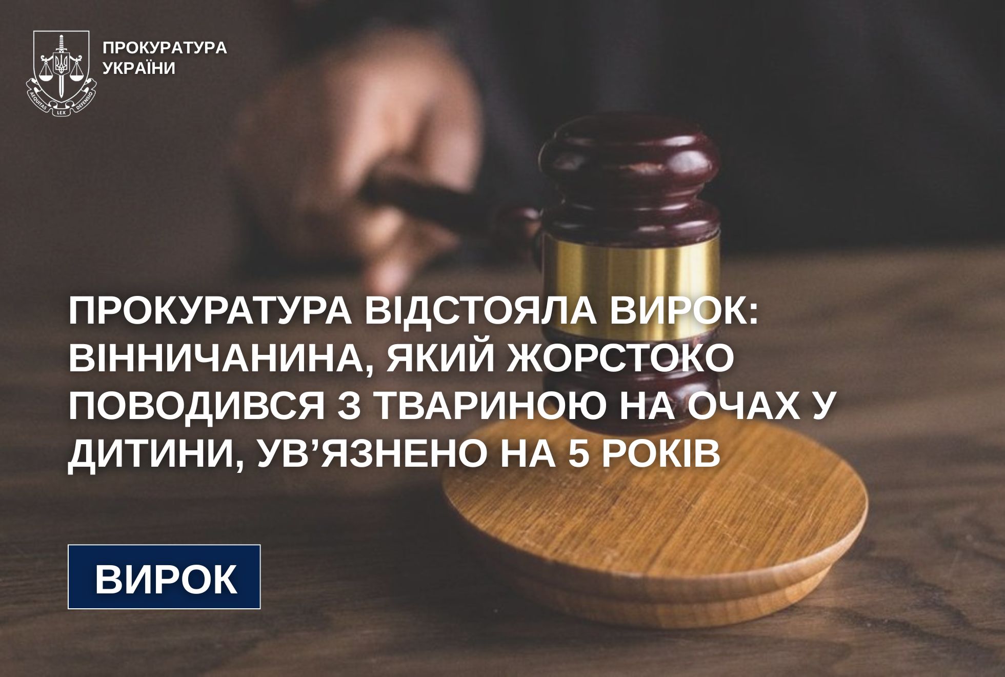У Вінниці засуджено чоловіка, який жорстоко поводився з твариною на очах у дитини, - прокуратура