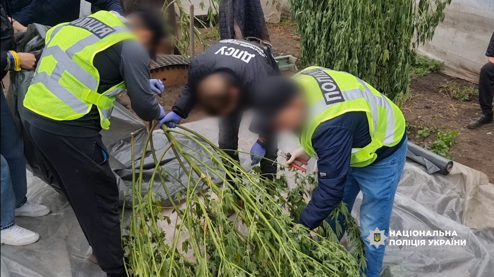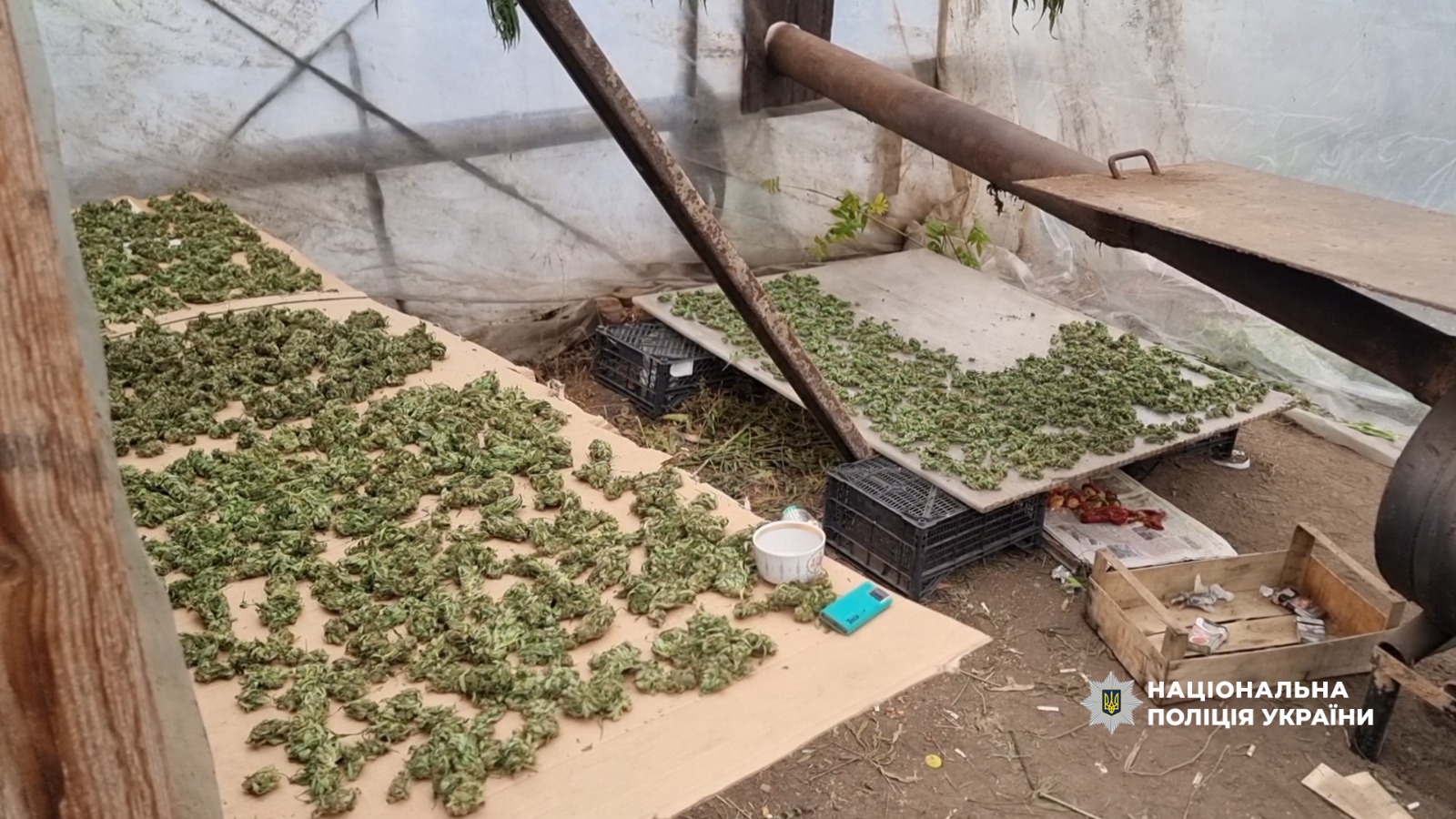 Правоохоронці виявили теплицю, в якій зберігалися висушені коноплі цілими гілками та подрібнені. Загальна вага виявленого наркотичного зілля склала понад 55 кг. Слідчі підтвердили їх наркотичний вміст експрес-тестом і скерували на експертизу.