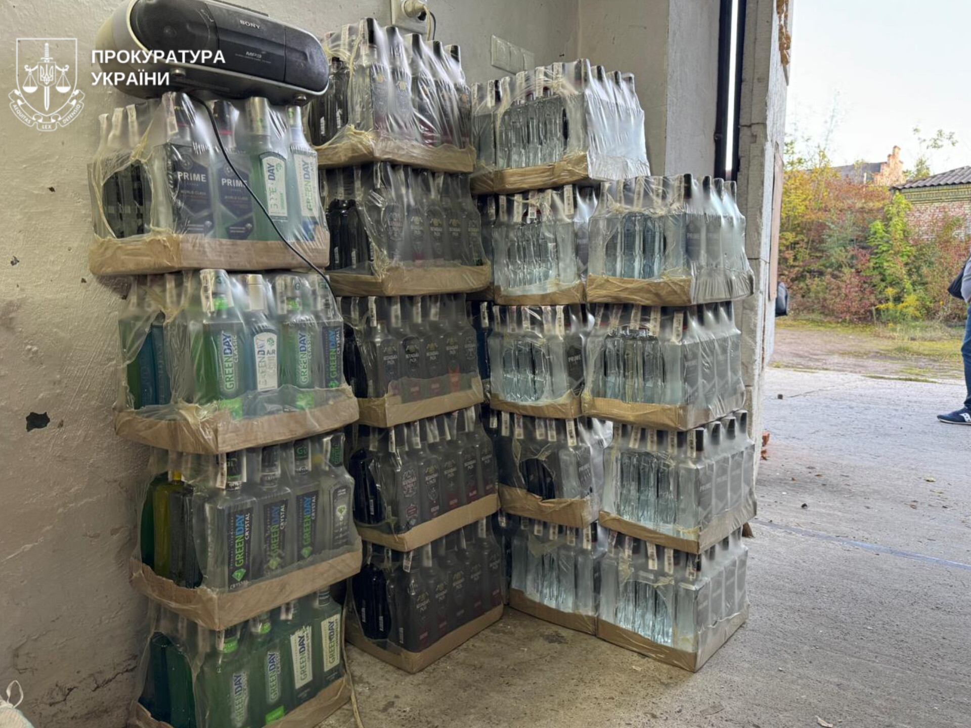 Під час обшуків за місцем виготовлення для складування нелегальної продукції правоохоронці вилучили 2,7 тисячі літрів фальсифікату: 8 пластикових діжок по 200 л спирту; 2 каністри по 30 л спирту; 27 пакетів «Bag-in-box» по 10 л; понад 930 пляшок із розлитою «горілкою» та «коньяком»; обладнання для розливу й закупорювання пляшок; фальшиві акцизні марки та етикетки; зошити з чорновими записами, що підтверджують виробничий процес.