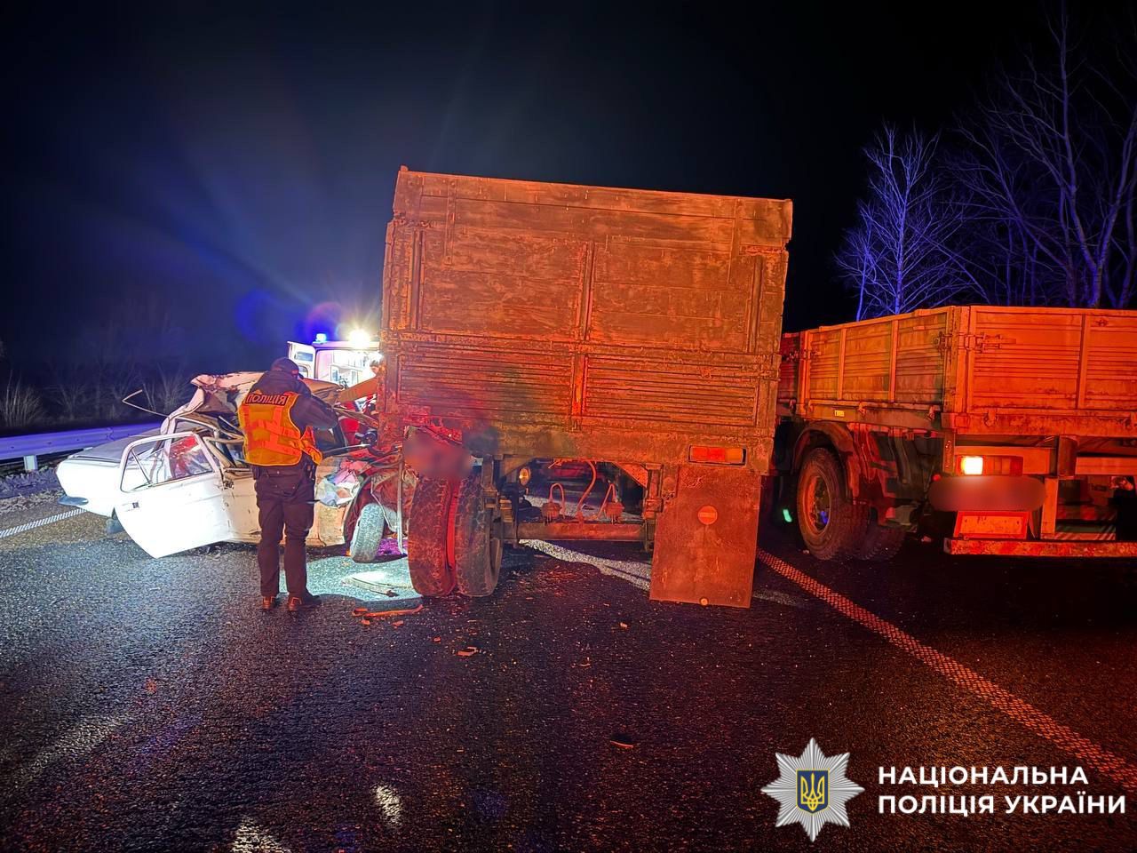 На Київщині легковик на трасі влетів у причіп вантажівки: до лікарні потрапили двоє людей. ФОТО
