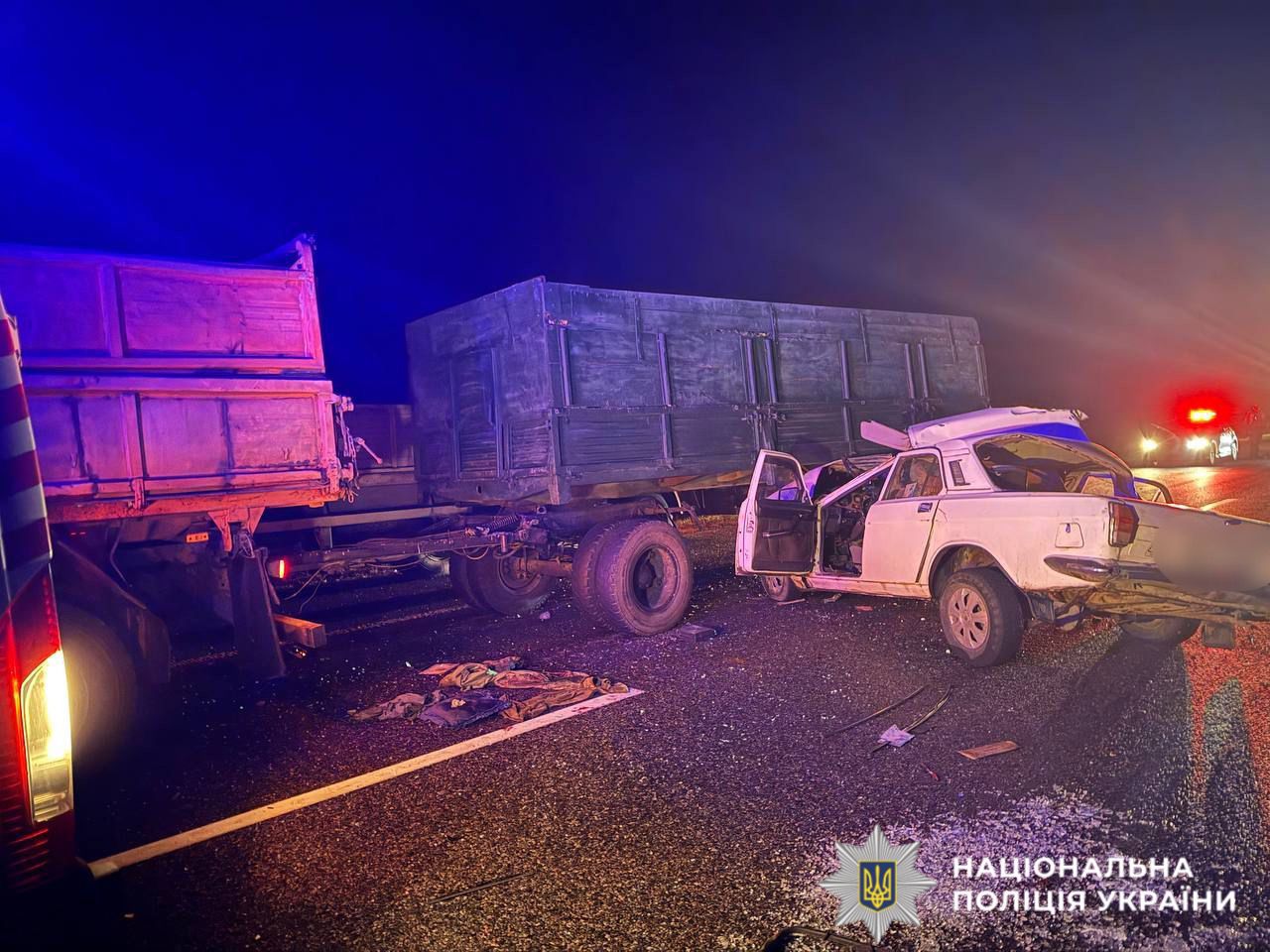 Поліцейські попередньо встановили, що 39-річний водій легковика ГАЗ, перебуваючи у стані алкогольного сп’яніння, допустив зіткнення з причепом, який був приєднаний до вантажівки, під керуванням 36-річного чоловіка.