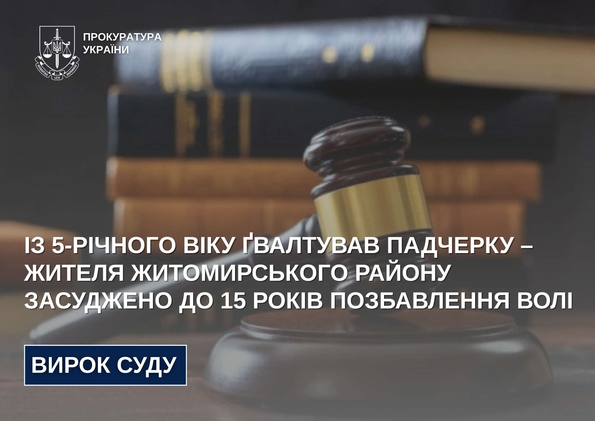 За підтримання публічного обвинувачення заступника керівника Житомирської обласної прокуратури 40-річного жителя Житомирського району визнано винним у зґвалтуванні малолітньої падчерки.