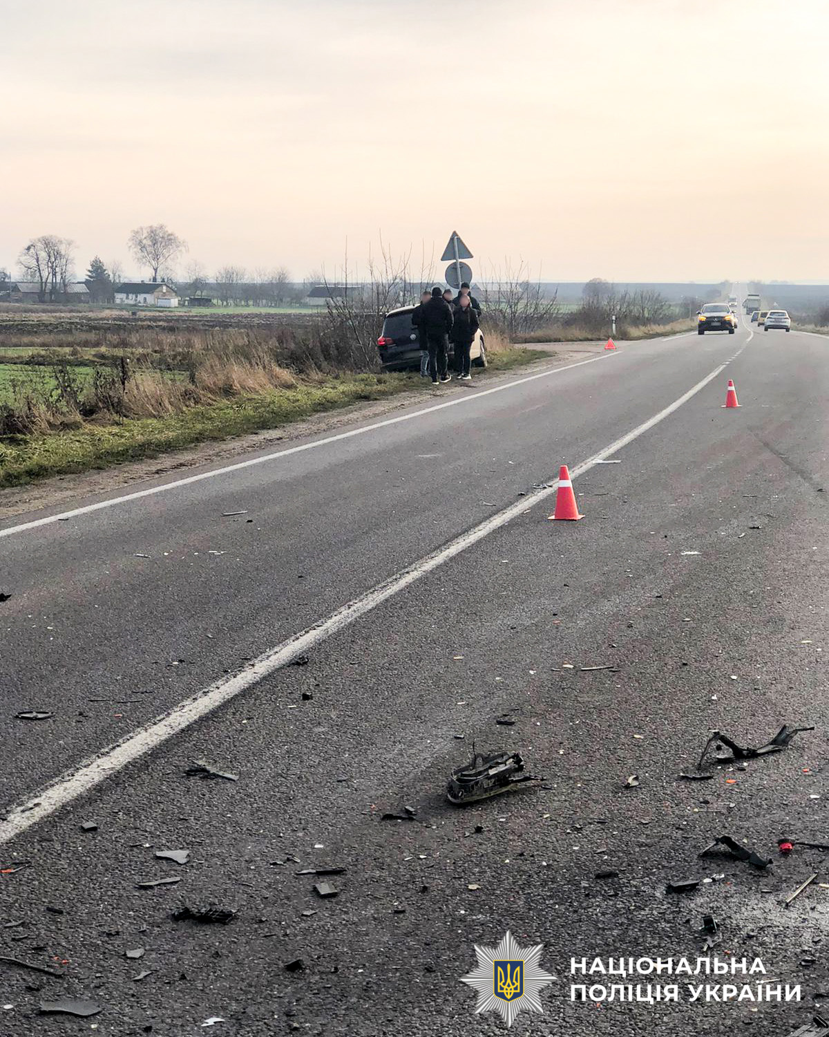 Слідчий на місці події встановив, що водій автомобіля BMW, 24-річний житель села Гільча Друга, здійснюючи маневр обгону, перетнув суцільну смугу та виїхав на зустрічну, де допустив зіткнення спочатку із автомобілем Volkswagen Tiguan, а потому — із зустрічним Hyundai Kona під керуванням 40-річної жительки села Біла Криниця.