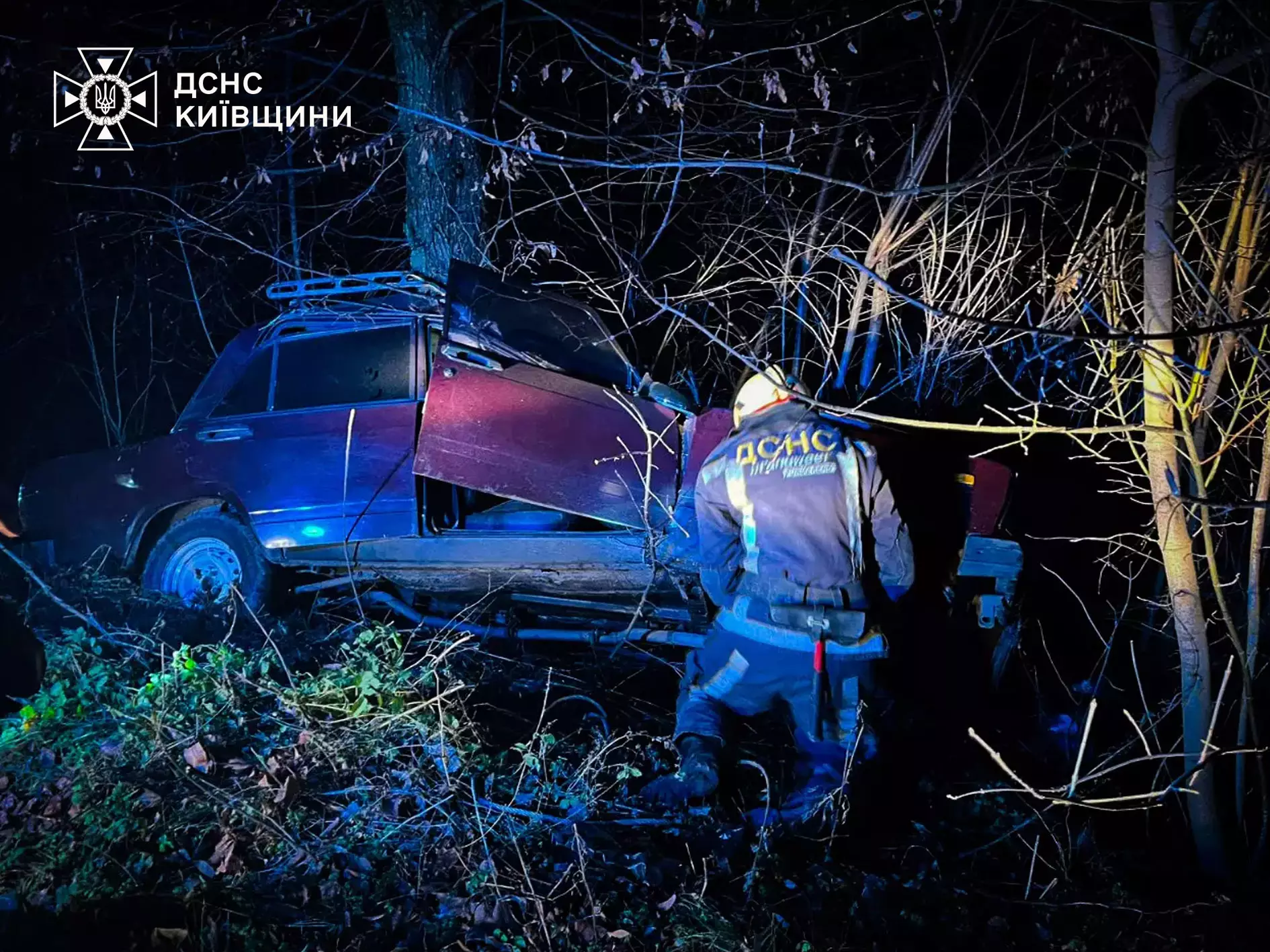 На Київщині легковик врізався у дерево - внаслідок ДТП загинув чоловік та постраждали двоє дітей
