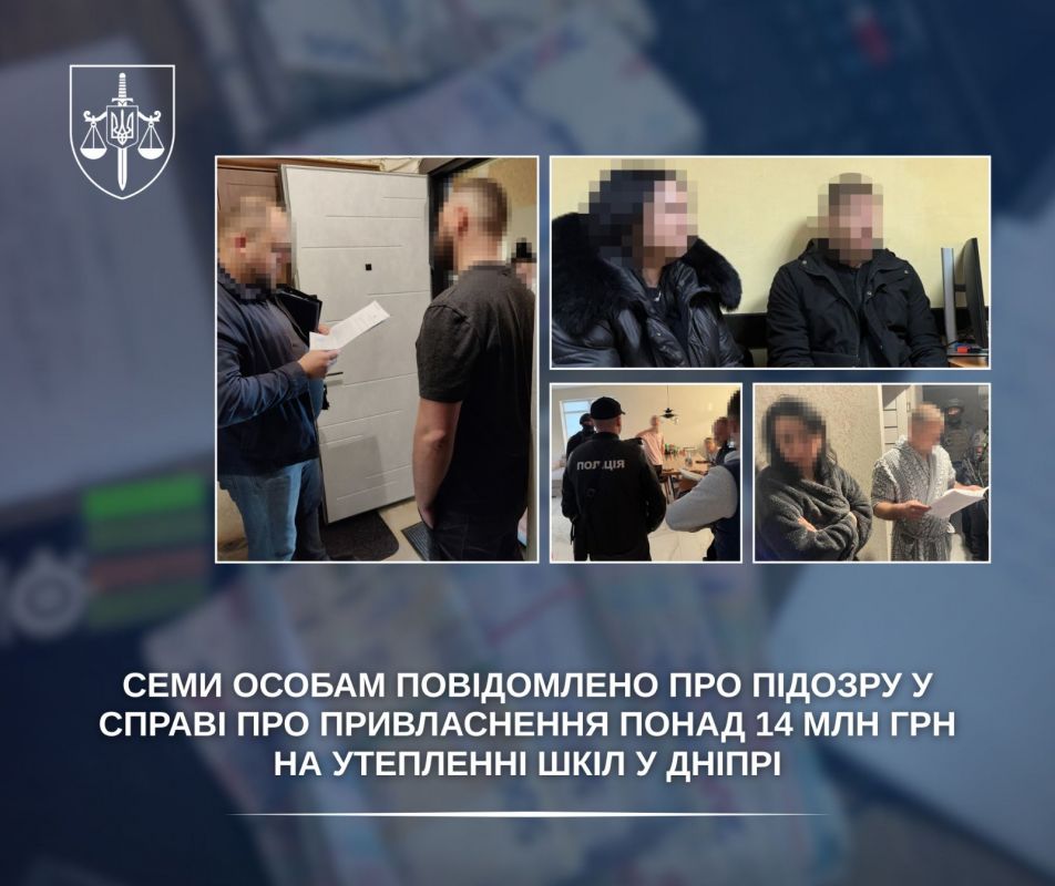За процесуального керівництва Дніпропетровської обласної прокуратури повідомлено про підозру семи особам, які, за даними слідства, організували схему привласнення бюджетних коштів, виділених на утеплення шкільних будівель у місті Дніпро.