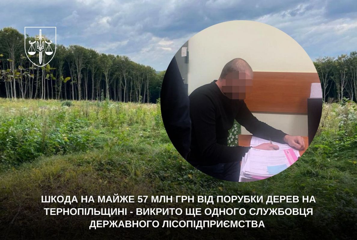 У справі про незаконну вирубку більше ніж 6 тис. дерев викрито ще одного службовця державного лісопідприємства. Під процесуальним керівництвом Тернопільської обласної прокуратури йому повідомлено про підозру у службовій недбалості, що спричинила тяжкі наслідки державним інтересам.