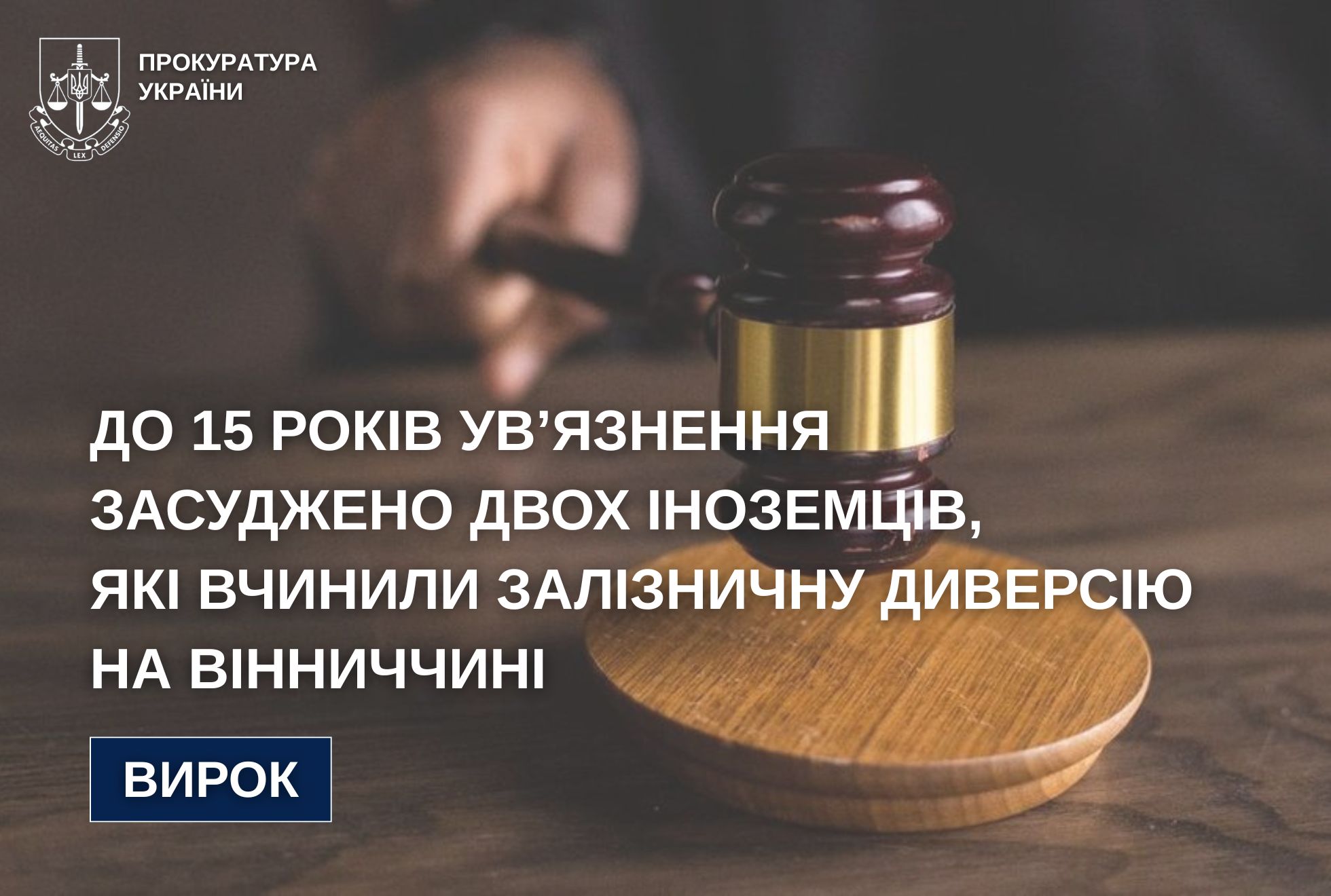 За публічного обвинувачення прокурорів Вінницької обласної прокуратури суд визнав двох громадян Республіки Молдова винними у вчиненні диверсії в умовах воєнного стану за попередньою змовою групою осіб.