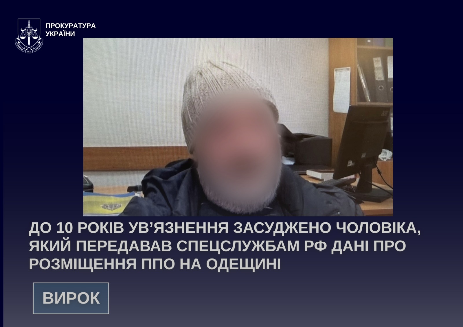 За підтримання публічного обвинувачення прокурорами Офісу Генерального прокурора та Печерської окружної прокуратури міста Києва судом 58-річного мешканця Одеси визнано винним у несанкціонованому поширенні інформації про розміщення Збройних Сил України та незаконному зберіганні боєприпасів.
