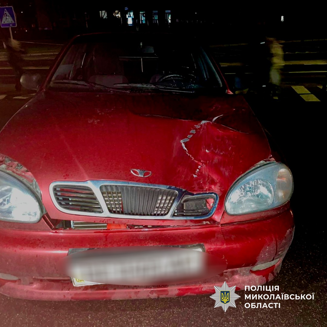 Близько 19:00 на перетині проспекту Богоявленського та вул. Сагайдачного у Миколаєві автомобіль Daewoo Lanos, під керуванням 23-річного водія, скоїв наїзд на 62-річну жінку, яка перетинала проїзну частину дороги по нерегульованому пішохідному переходу.