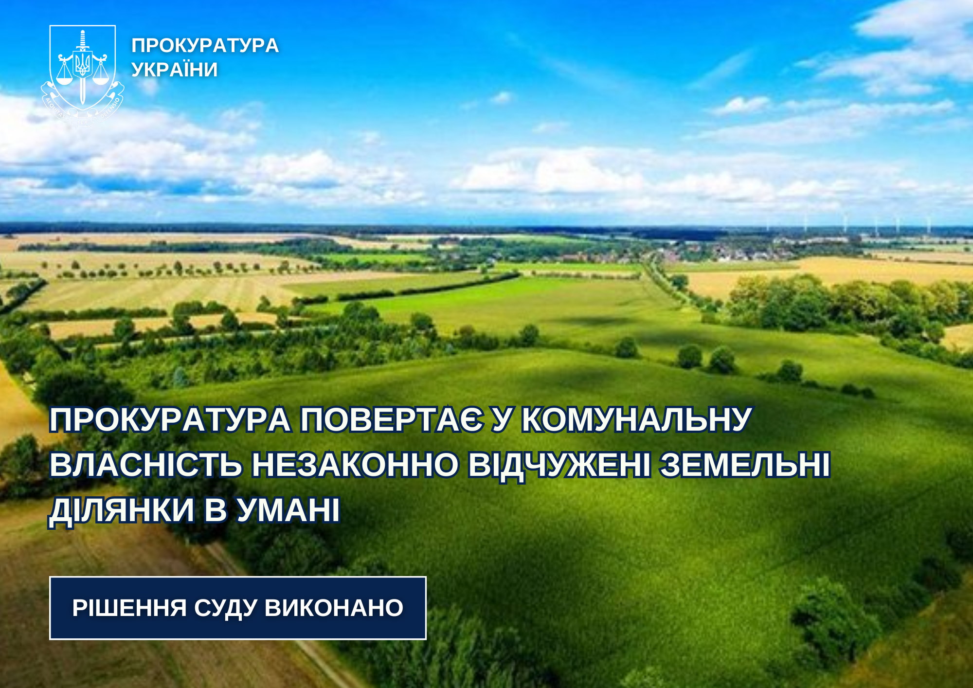 Прокуратура продовжує інформувати про результати реагування на факти незаконного вибуття низки земельних ділянок із комунальної власності територіальної громади м. Умані. Йдеться про отримання громадянами у приватну власність земельних ділянок за підробленими державними актами, розташованих поблизу історичного та культурного центру міста.