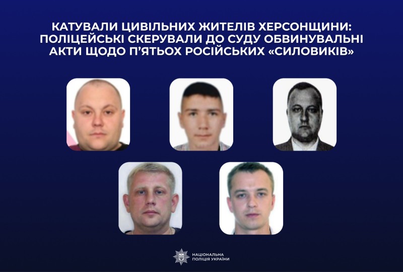 Слідчі поліції Херсонщини завершили досудове розслідування щодо п’ятьох осіб, причетних до катувань та жорстокого поводження з мирними жителями під час тимчасової окупації області. Обвинувальні акти стосовно фігурантів скеровано до суду.