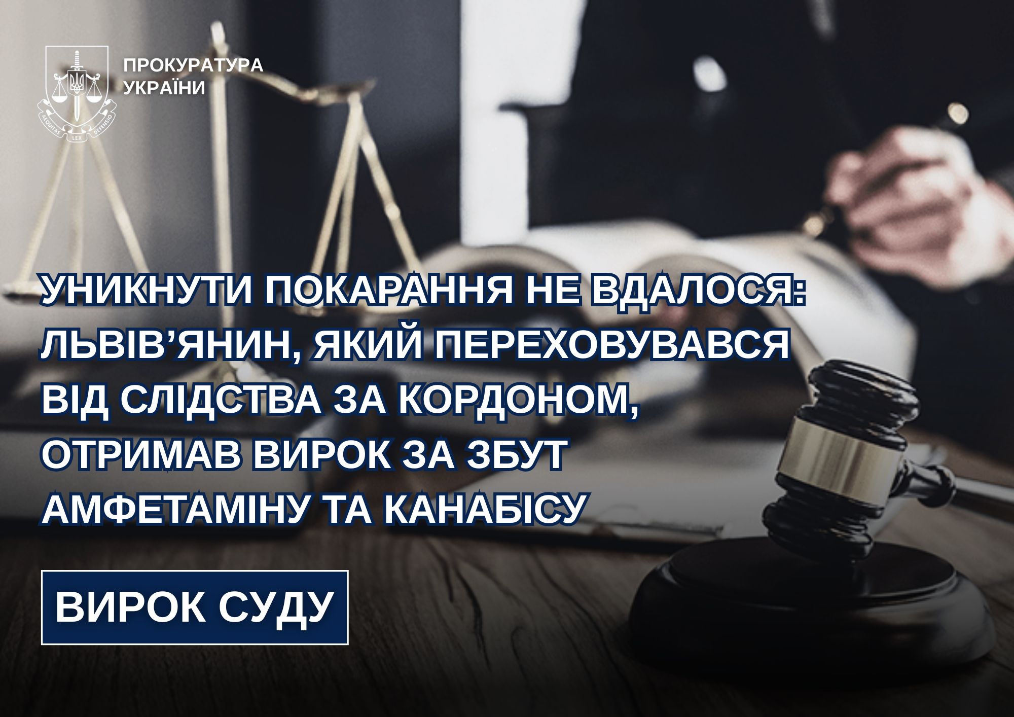 На Львівщині засуджено наркодилера, який втік за кордон, але був екстрадований, - прокуратура