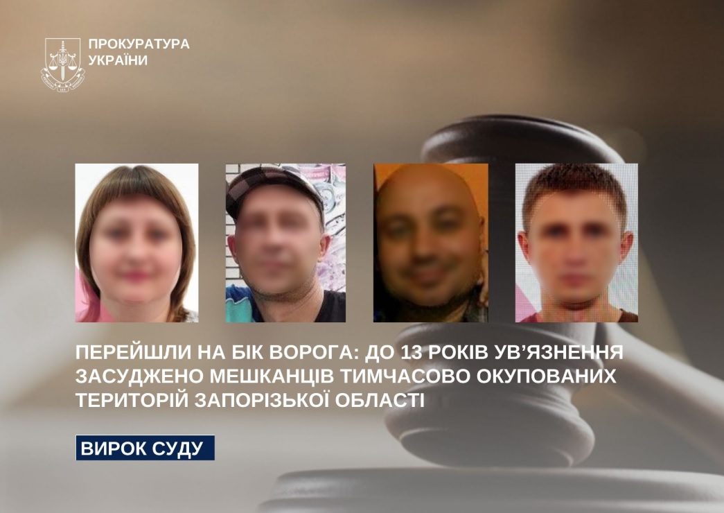 За публічного обвинувачення прокурорів Запорізької обласної прокуратури в порядку спеціального судового розгляду винесено обвинувальні вироки стосовно чотирьох громадян України, які обійняли посади у незаконних правоохоронних органах, створених окупаційною адміністрацією на тимчасово окупованих територіях Запорізької області.