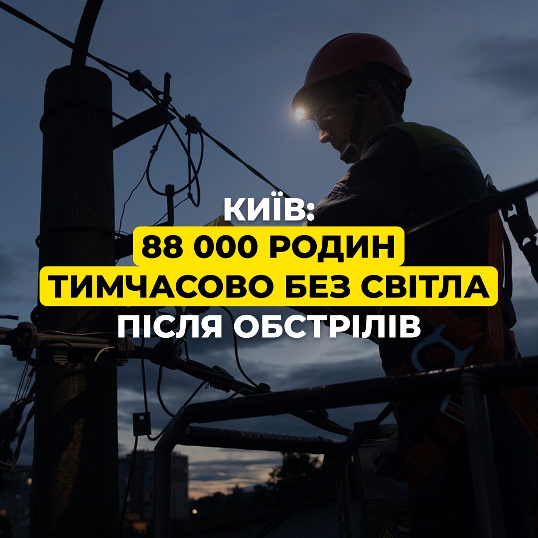 Київ: 88 000 родин тимчасово без світла після масованої атаки
