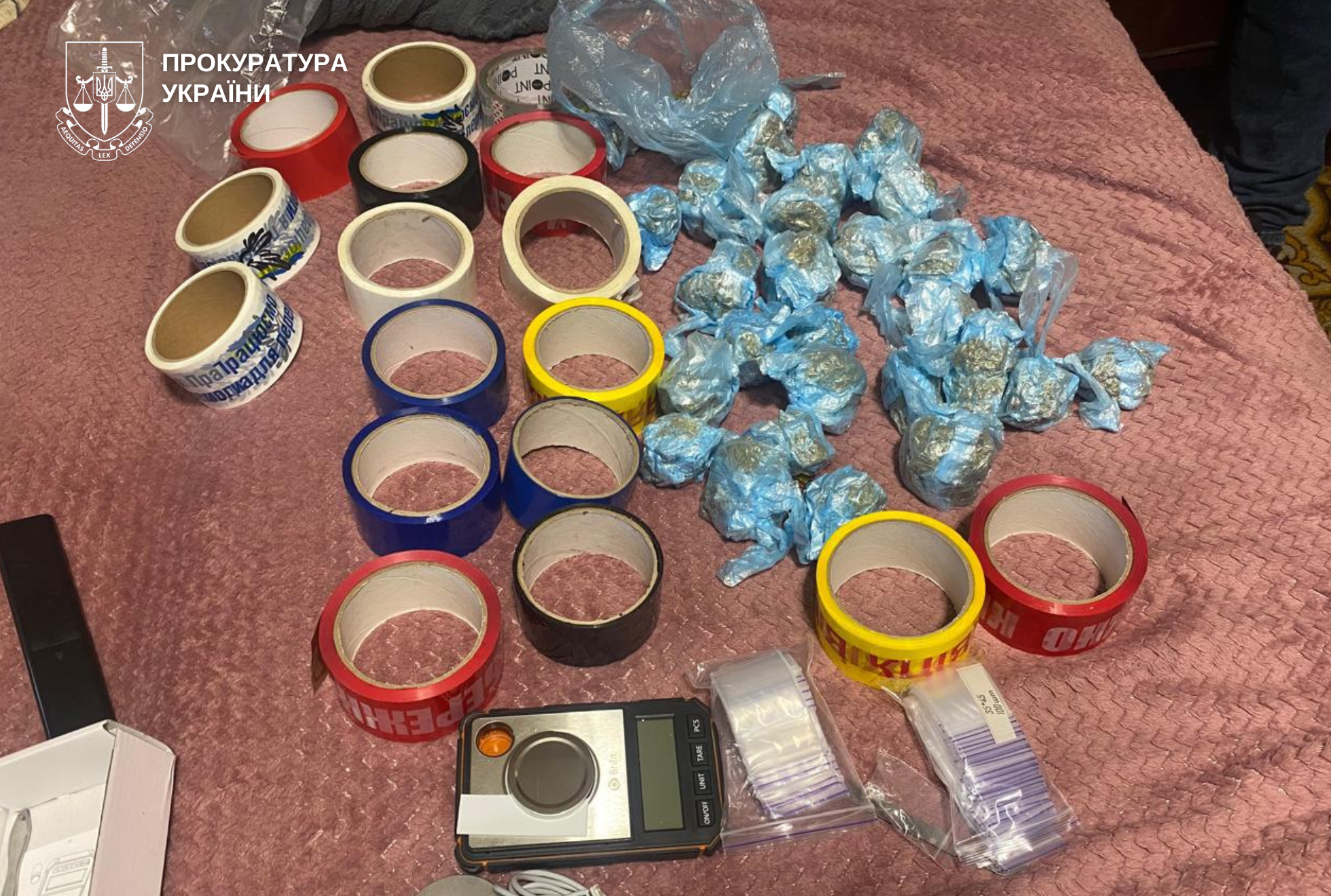 У ході розслідування проведено 6 обшуків, під час яких вилучено майже пів кілограма канабісу, обладнання, призначене для незаконного виготовлення наркотичного засобу, психотропну речовину амфетамін, прекурсор фенілнітропропен, пістолет, дві ручні гранати іноземного виробництва, грошові кошти в сумі понад 1,3 млн грн у національній та іноземних валютах, мобільні телефони, банківські карти.