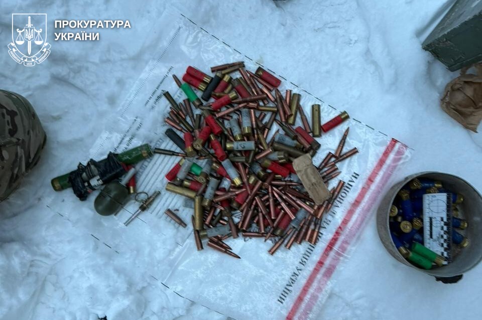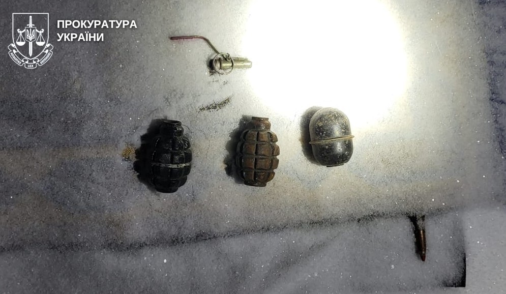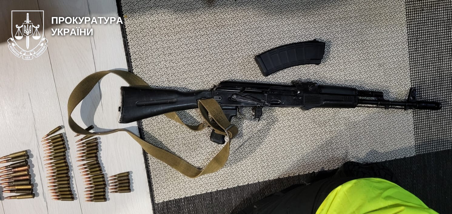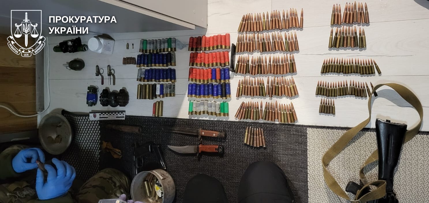 Крім того, в ході проведення санкціонованого обшуку вдома у підозрюваного правоохоронці виявили арсенал зброї, зокрема автомат «АК-74», пістолет «Форт-12 Р» та патрони до них, корпуси гранат «Ф-1», «РГД-5» та «ДМ-51» з запалами, а також штик ножі. Всі вилучені речі направлені на експертизу.