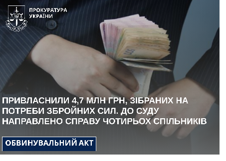 Сумською обласною прокуратурою затверджено та направлено до суду обвинувальний акт стосовно чотирьох сумчан, які за попередньою змовою збирали кошти під прикриттям благодійності та частково витрачали не за призначенням.