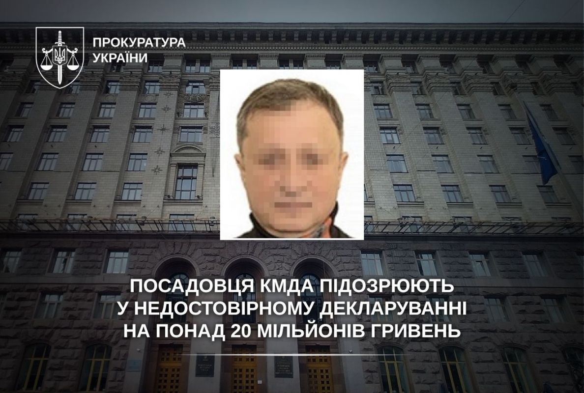 Прокурори Київської міської прокуратури повідомили про підозру у недостовірному декларуванні директору Департаменту промисловості та розвитку підприємництва КМДА. Він вказав у декларації 31 млн гривень заощаджень, що не відповідають його доходам.