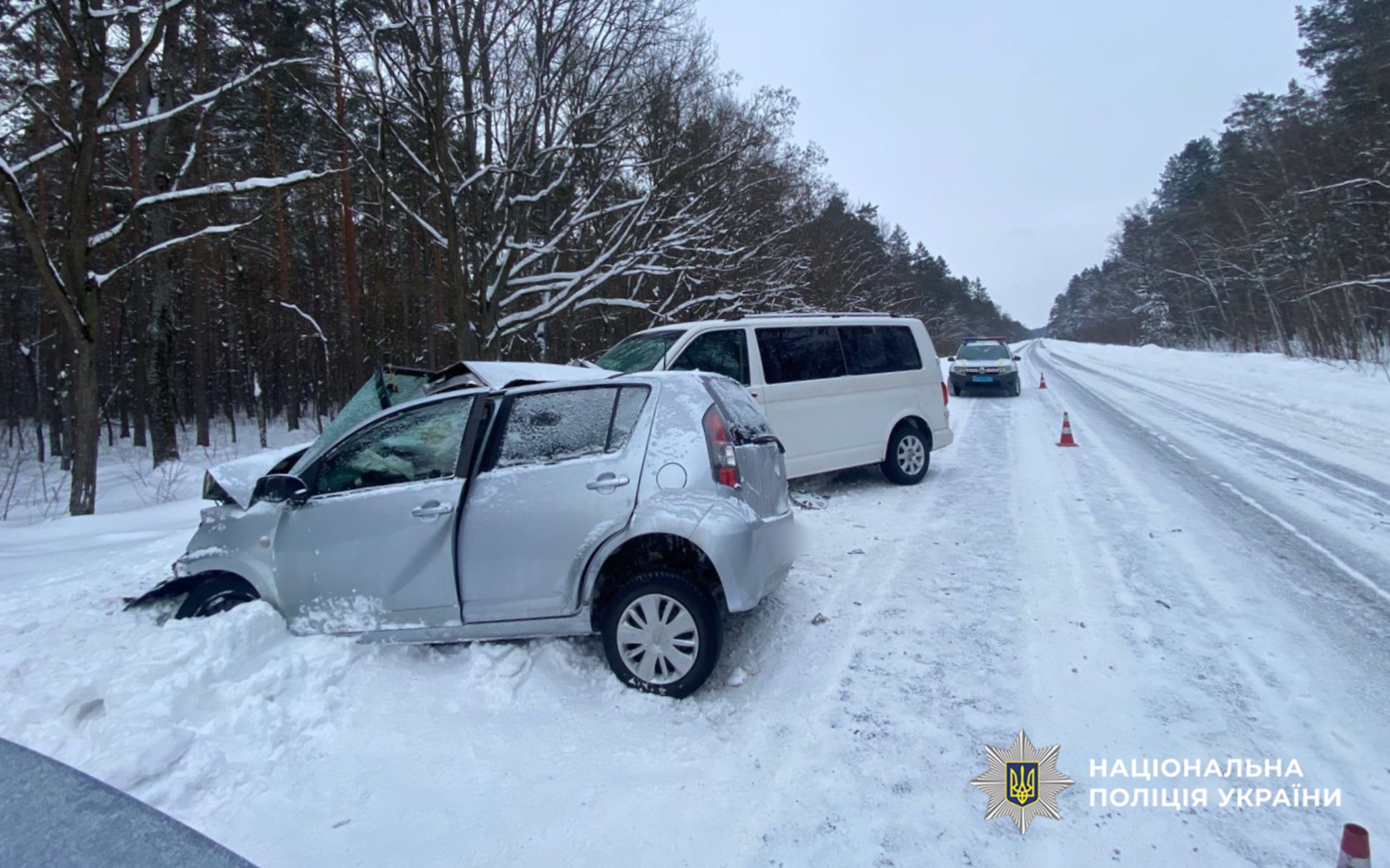 Попередньо встановлено, що відбулося зіткнення легковика Daihatsu Sirion під керуванням 33-річного жителя Кривого Рогу з автомобілем Volkswagen Transporter за кермом якого перебував 46-річний коростенець.