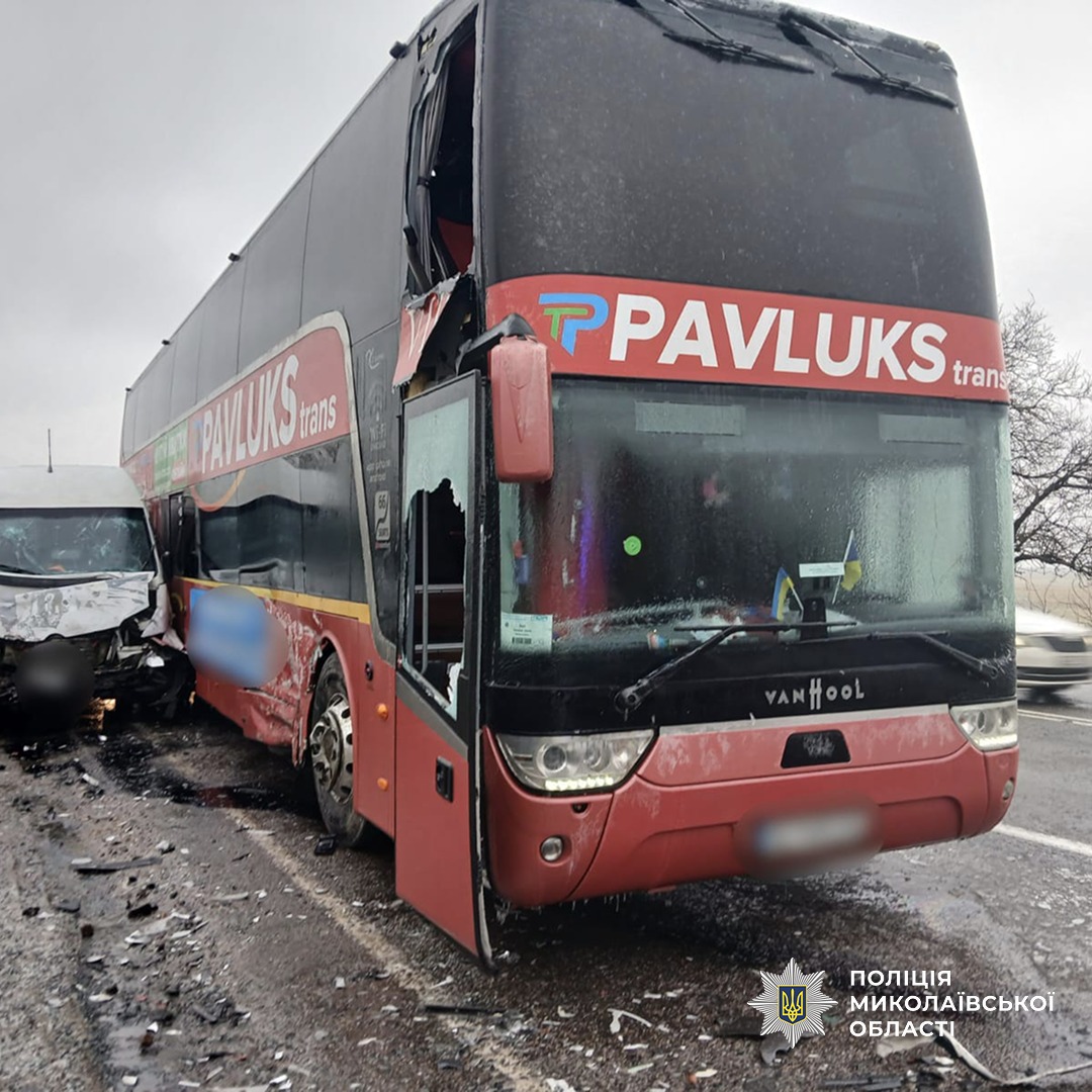 За попередніми даними, 36-річний керманич VanHool, який здійснював перевезення пасажирів сполученням «Миколаїв-Варшава», допустив зіткнення з мікроавтобусом Mercedes Sprinter, який рухався за маршрутом «Одеса-Миколаїв».