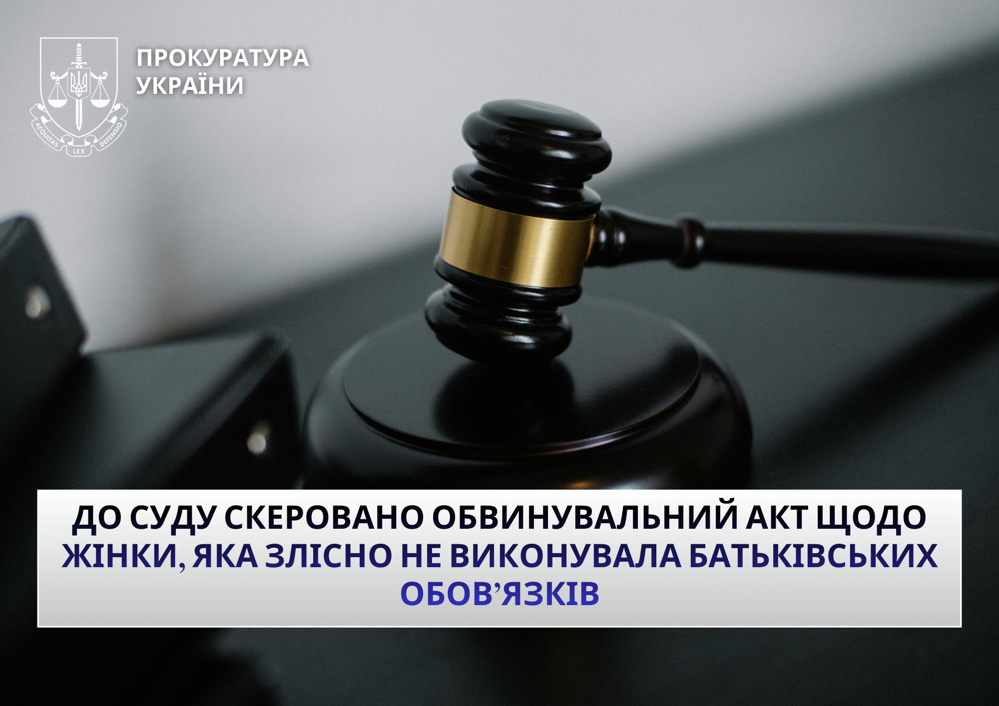 Золотоніська окружна прокуратура передала до суду обвинувальний акт стосовно жительки Золотоніського району Черкаської області, яку обвинувачують у злісному невиконанні обов’язків по догляду за дитиною, що призвело до тяжких наслідків.