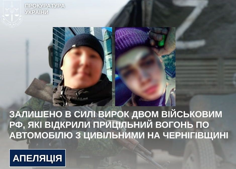 За участі прокурорів Чернігівської окружної прокуратури Київський апеляційний суд залишив без змін вирок суду першої інстанції, яким двох військовослужбовців зс рф визнано винними у порушенні законів та звичаїв війни, поєднаному з умисними вбивствами, вчиненому групою осіб за попередньою змовою.