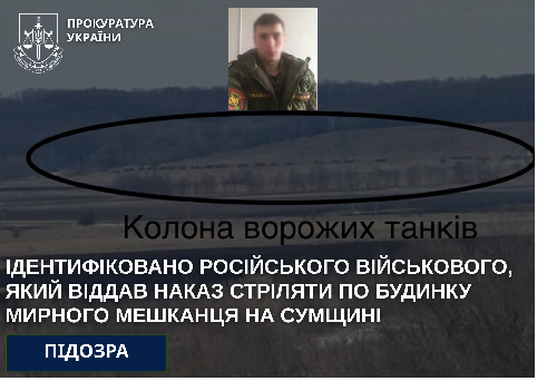 Ідентифіковано військового рф, який під час окупації Сумщини наказав здійснити смертельний постріл з танка