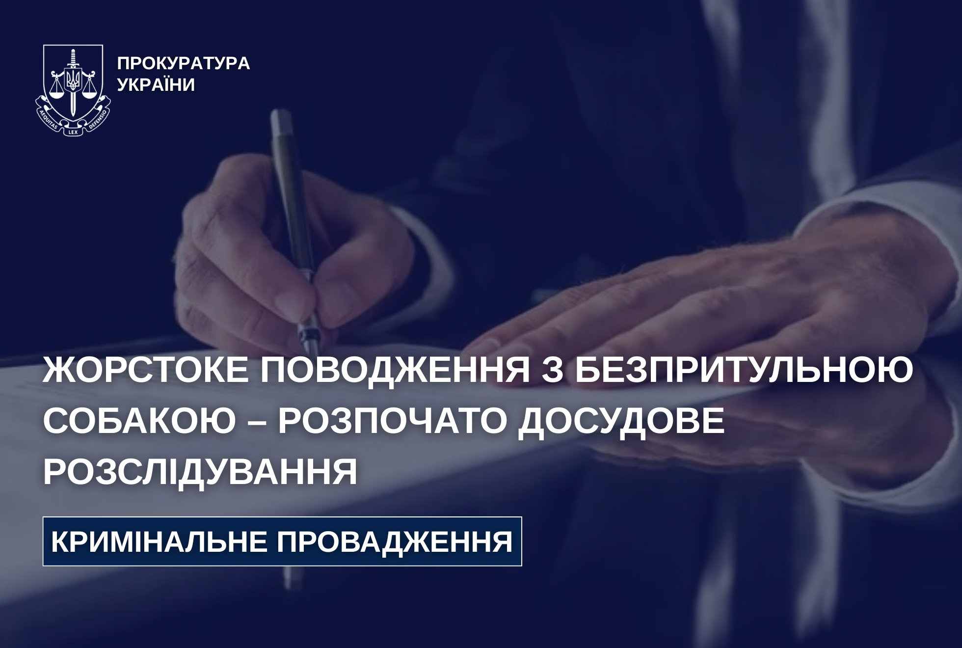 Хмельницькою окружною прокуратурою здійснюється процесуальне керівництво у кримінальному провадженні за фактом жорстокого поводження з твариною (ч. 1 ст. 299 КК України).