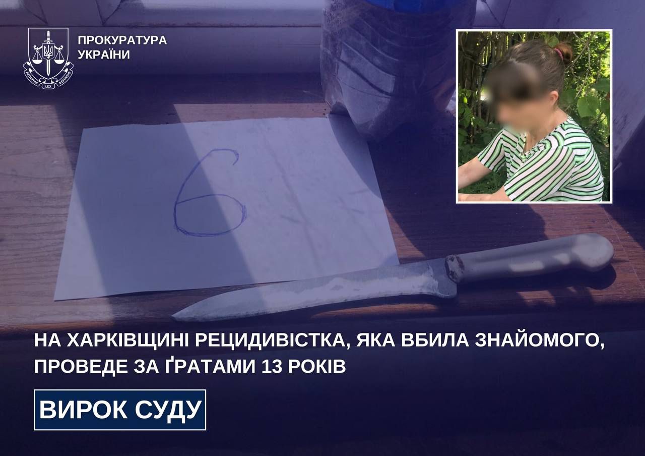 На Харківщині засуджено рецидивістку, яка пляшкою та ножем безжально вбила чоловіка