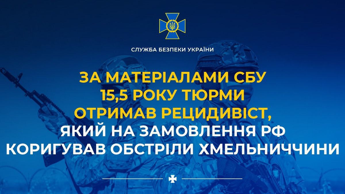 За матеріалами СБУ 15,5 року тюрми отримав рецидивіст, який на замовлення рф коригував обстріли Хмельниччини