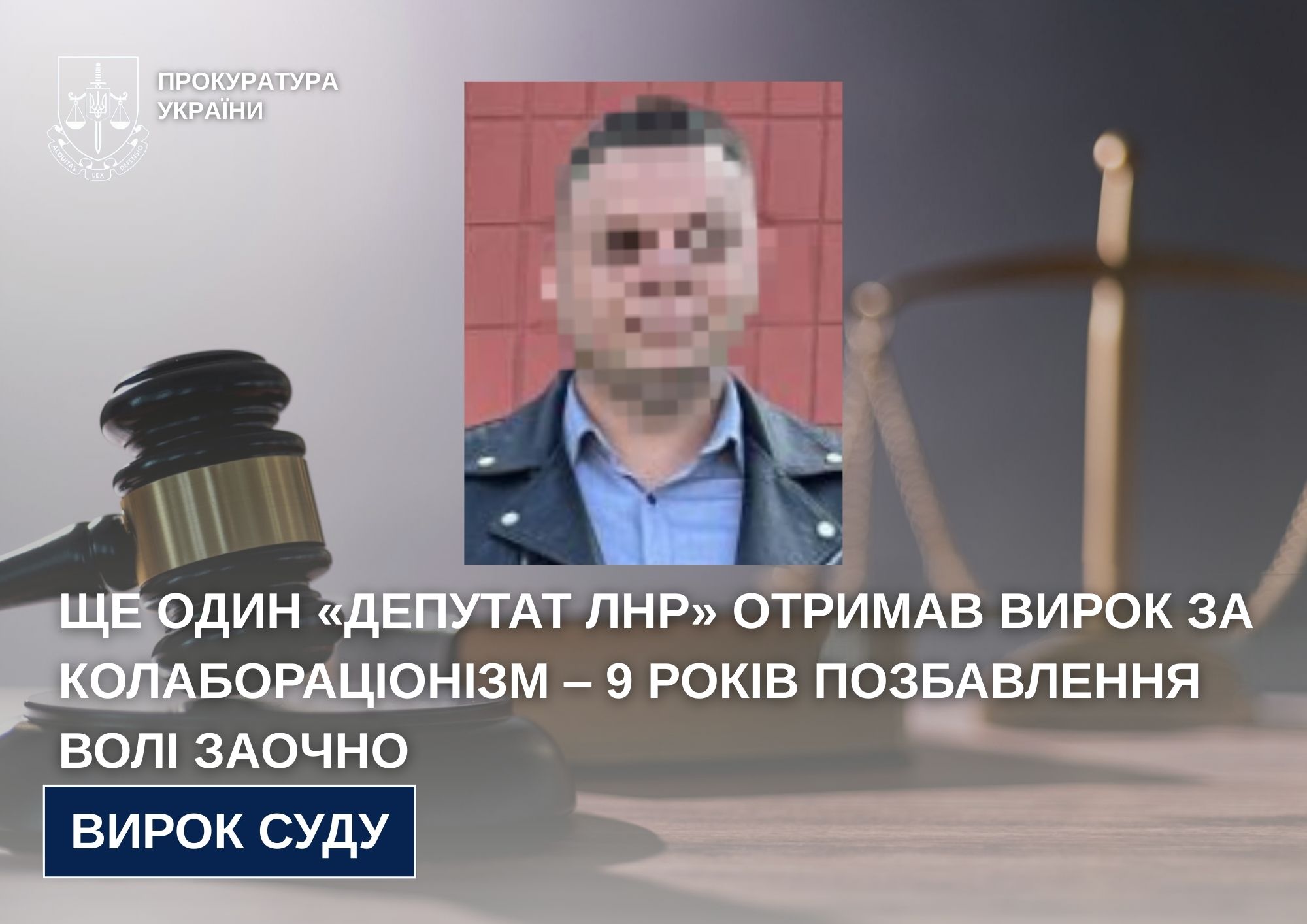 Мешканця Щастинського району Луганської області заочно засуджено до 9 років позбавлення волі з конфіскацією майна за колабораційну діяльність. Суд ухвалив таке рішення за публічного обвинувачення прокурорів Луганської обласної прокуратури.