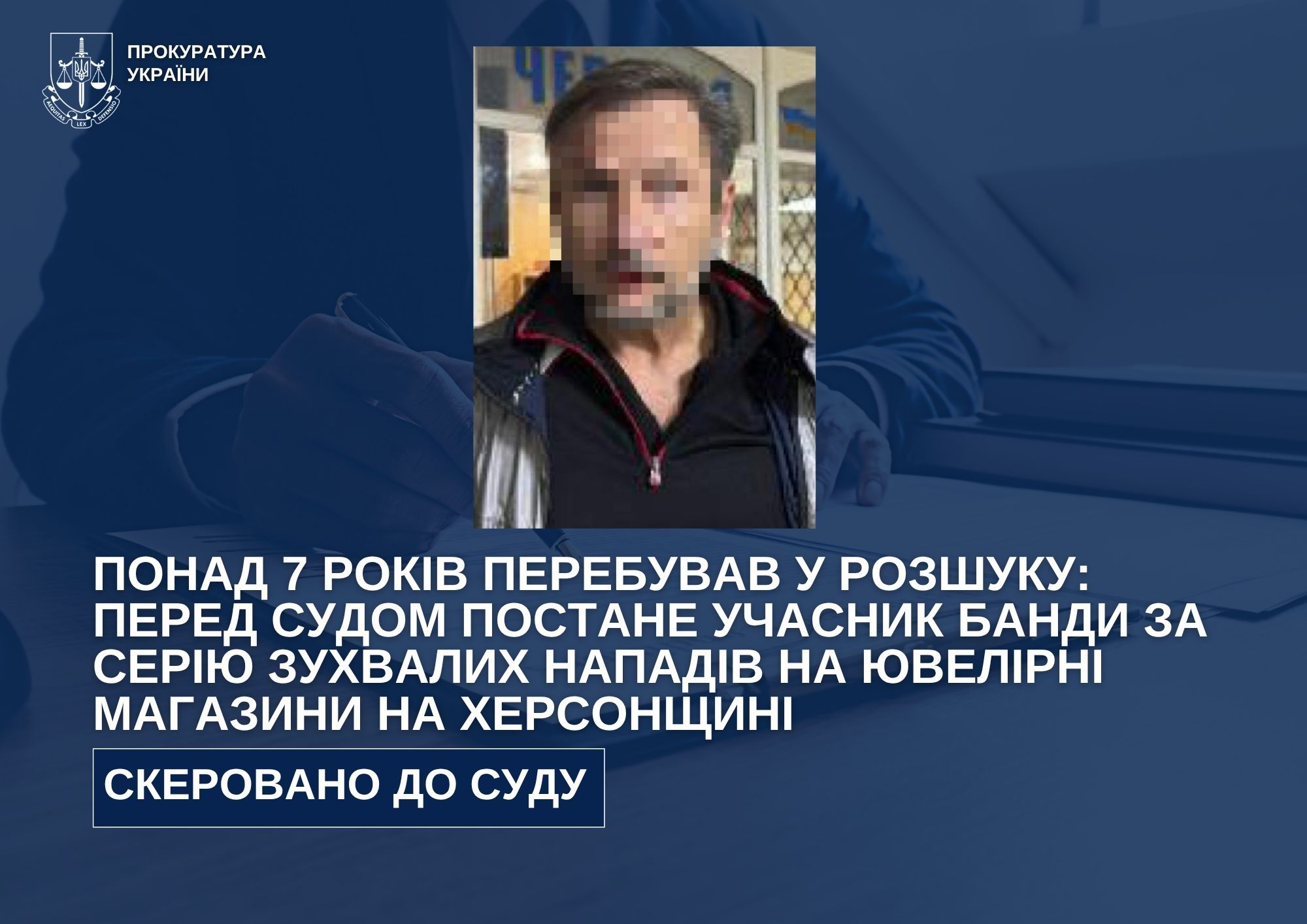 На Херсонщині за серію нападів на ювелірні крамниці судитимуть учасника банди, який 7 років був у розшуку
